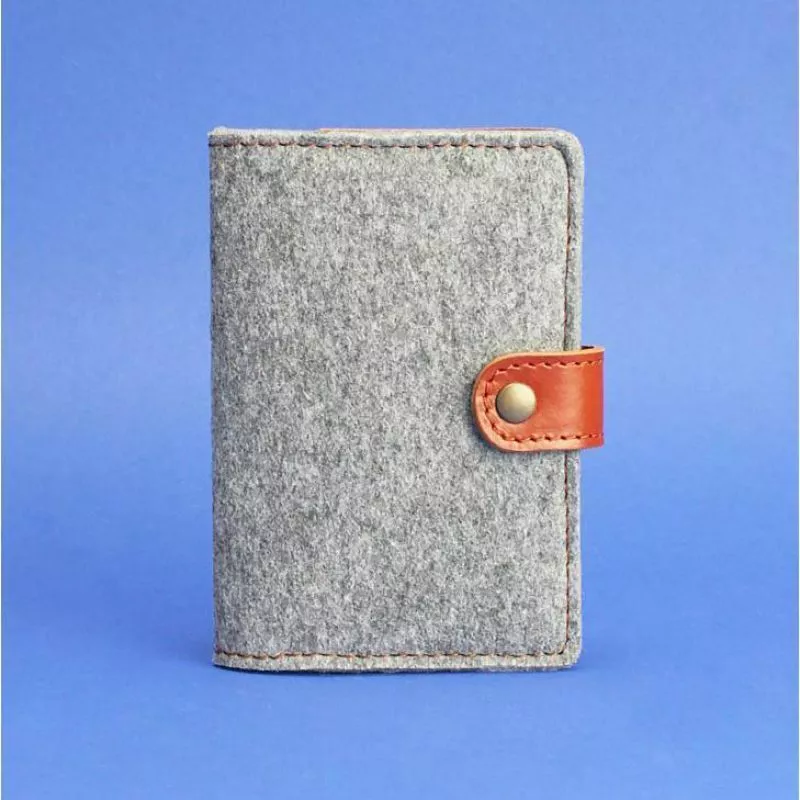 Фактуру и сдержанный цвет фетра подчёркивают контрастные кожаные