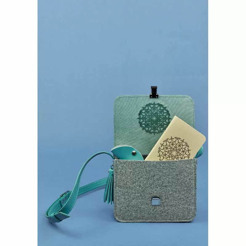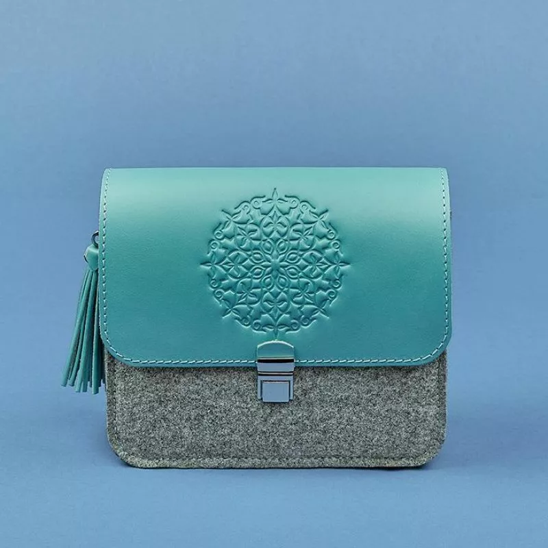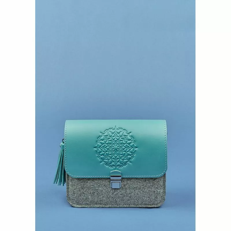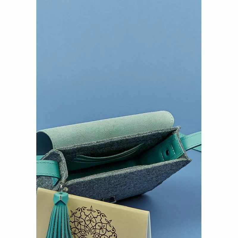 Фетровая женская бохо-сумка Лилу с кожаными бирюзовыми вставками