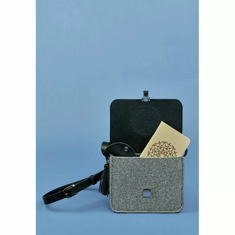 Фетровая женская бохо-сумка Лилу с кожаными черными вставками