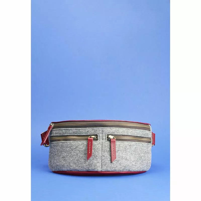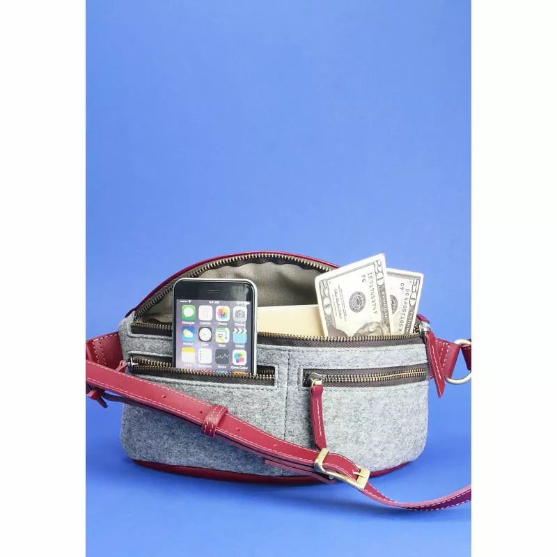 Фактуру и сдержанный цвет фетра подчёркивают контрастные кожаные
