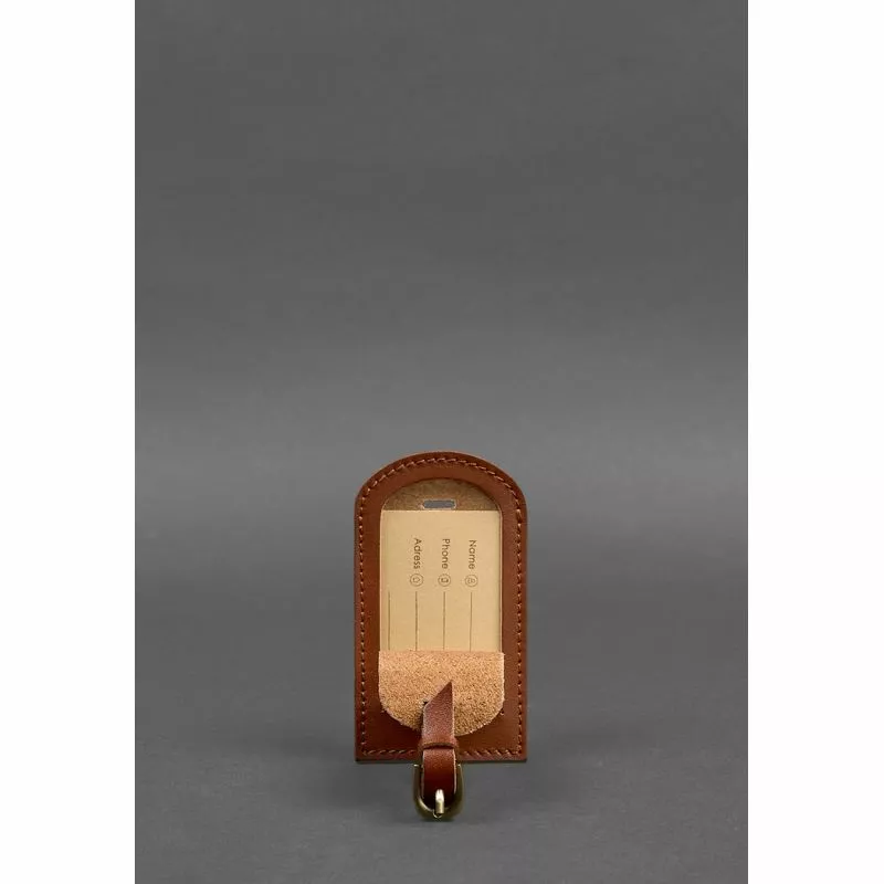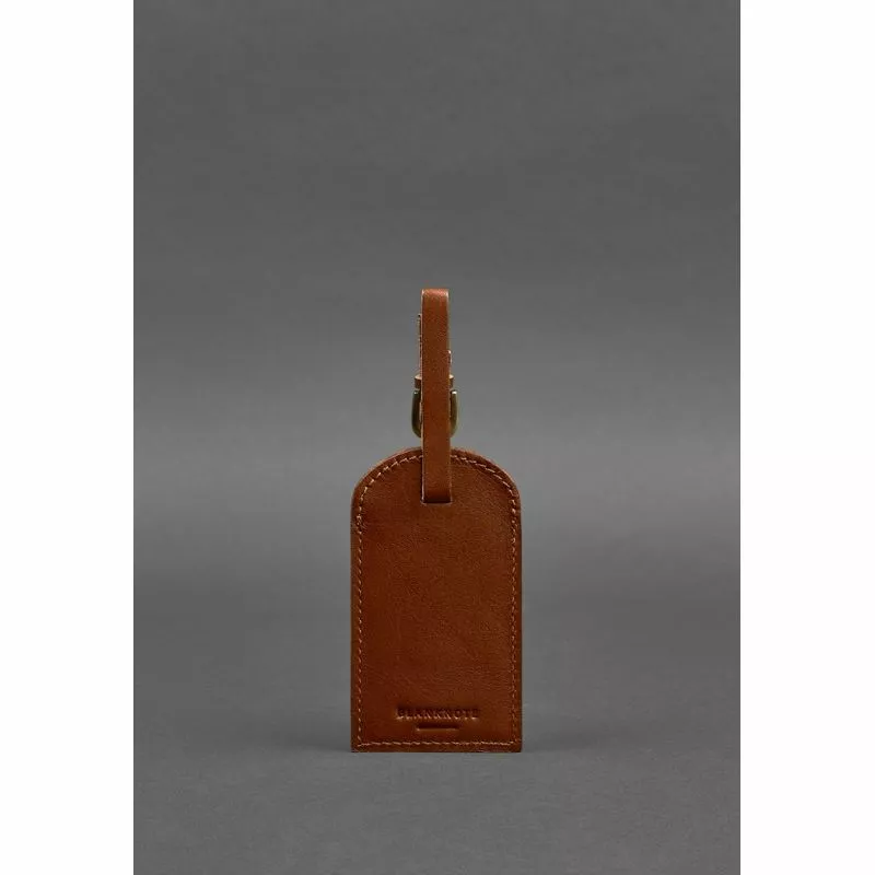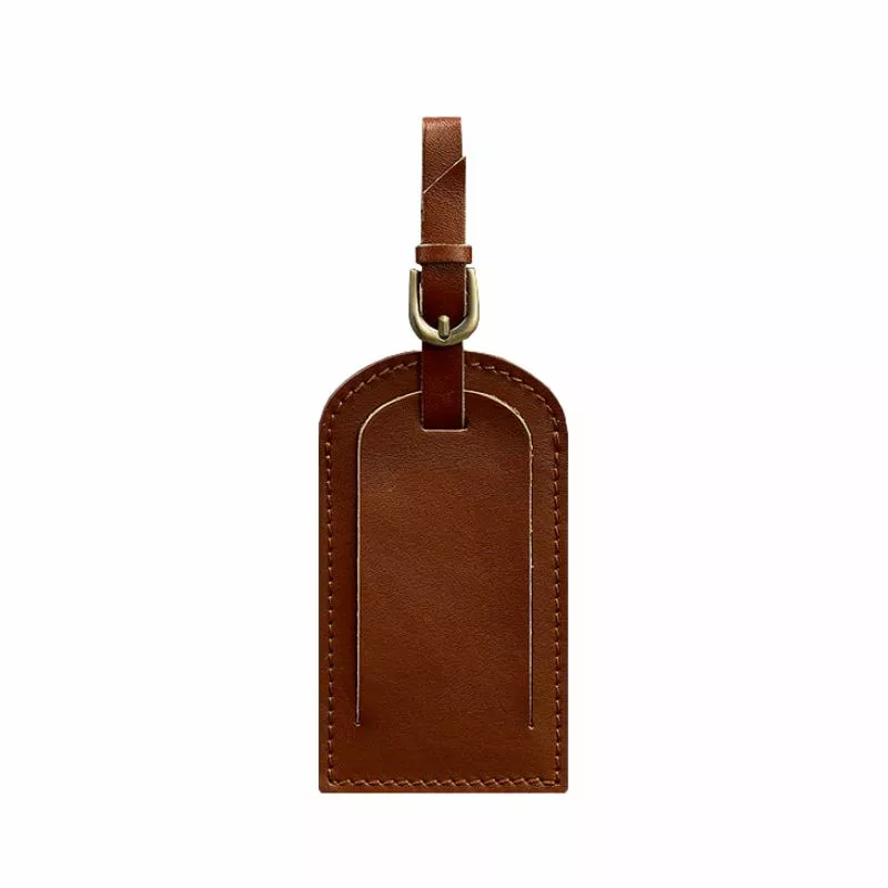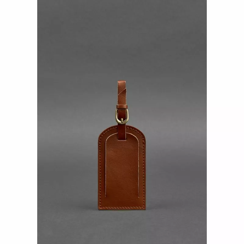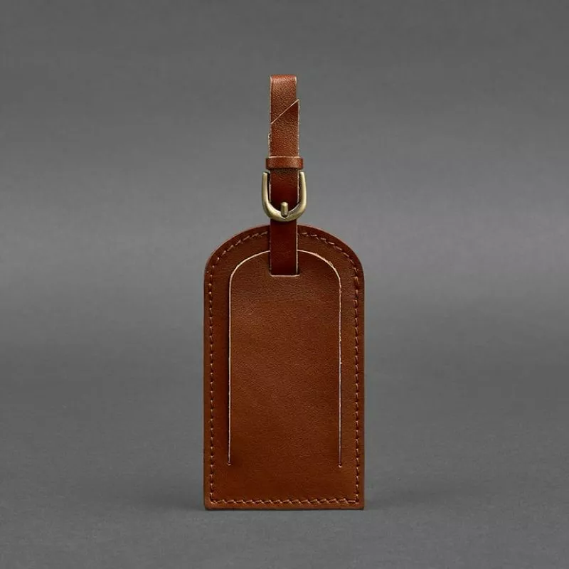 Пристегнуть бирку к сумке или чемодану можно кожаным ремешком.