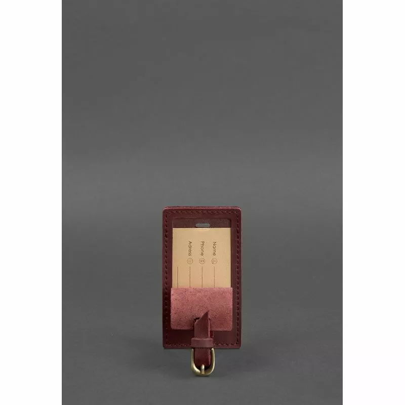 Крепится бирка на багаж при помощи кожаного ремешка.