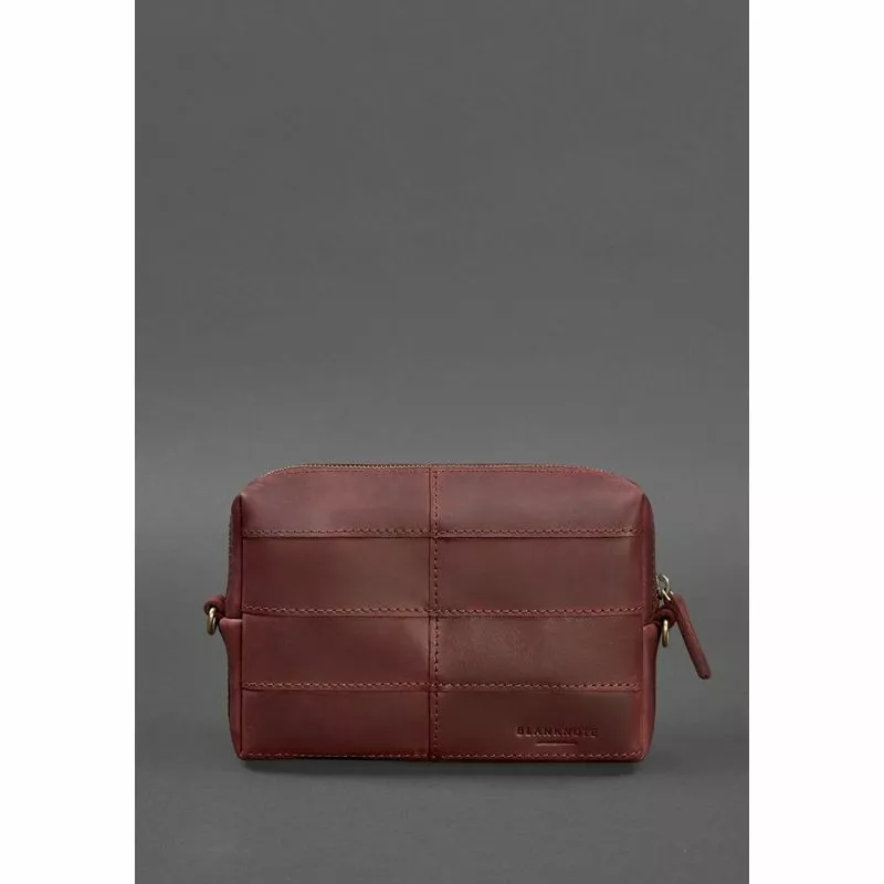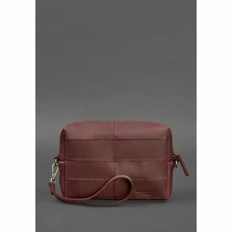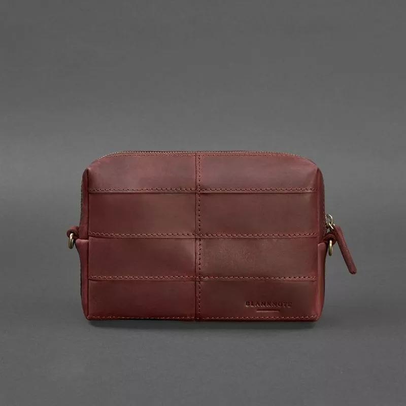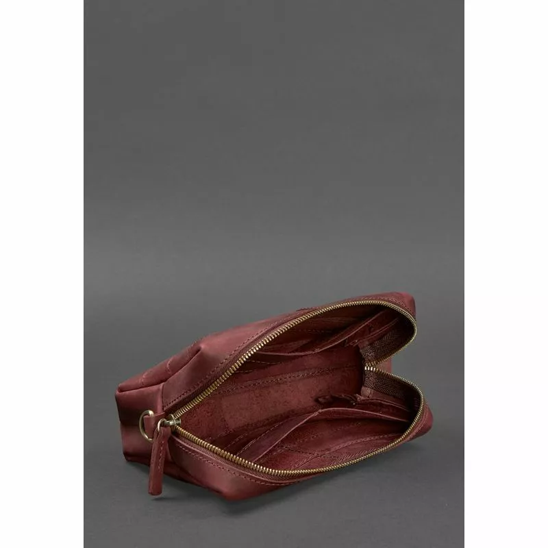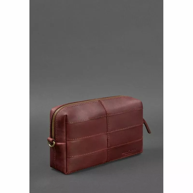 Кожаная косметичка-несессер в бордовом цвете предназначена для