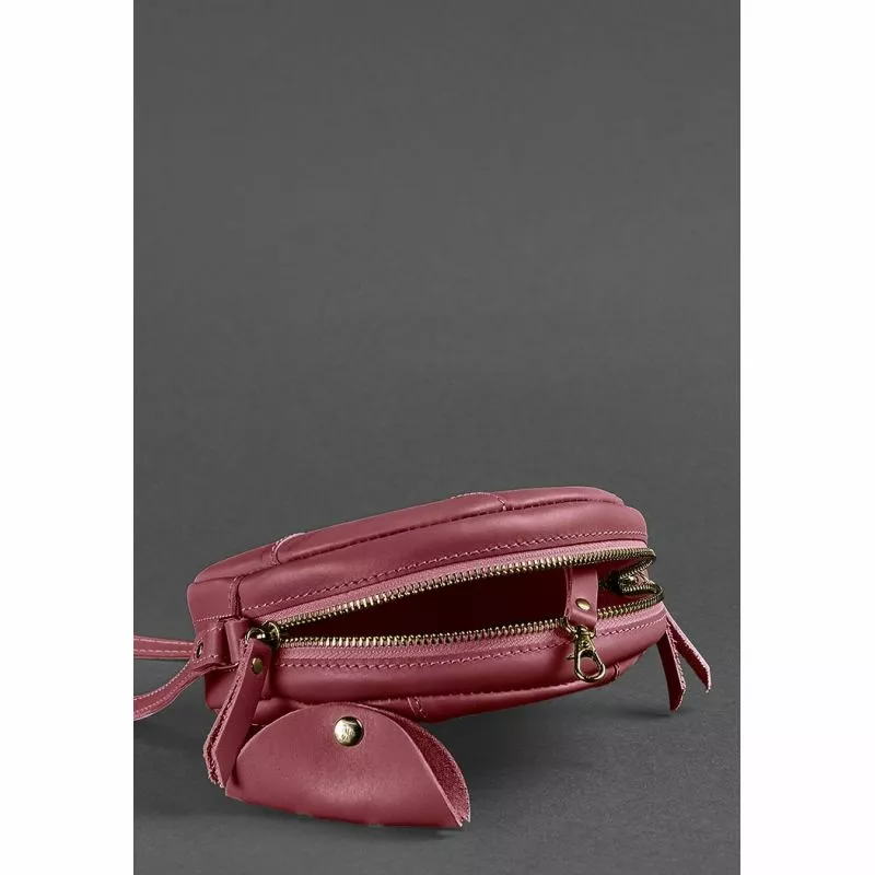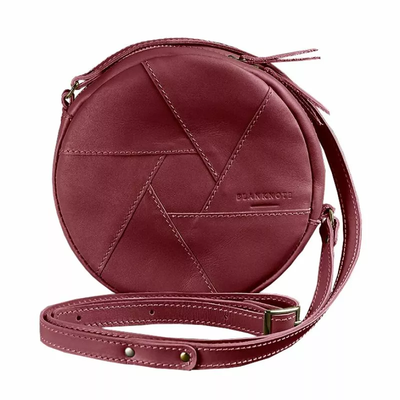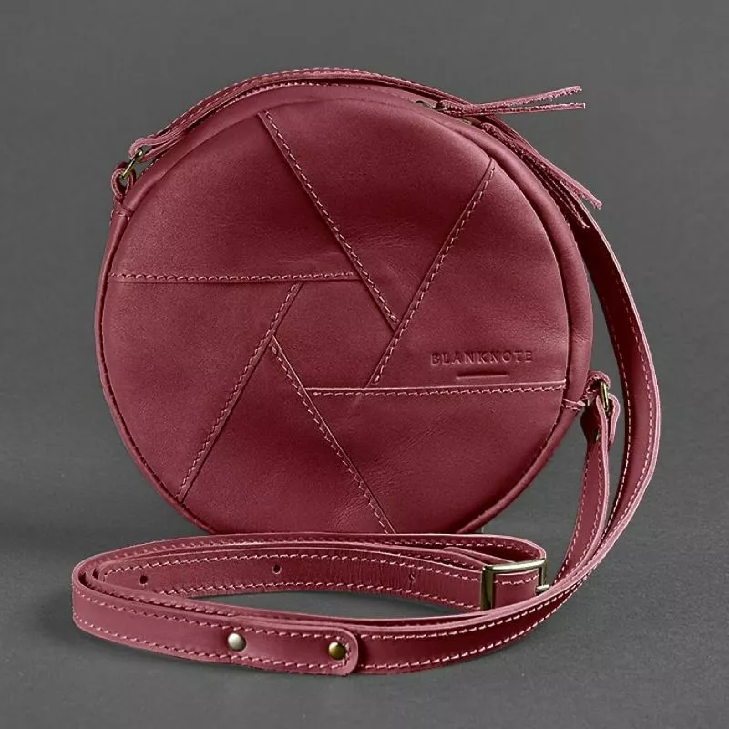Небольшая бордовая сумочка круглой формы из натуральной кожи станет