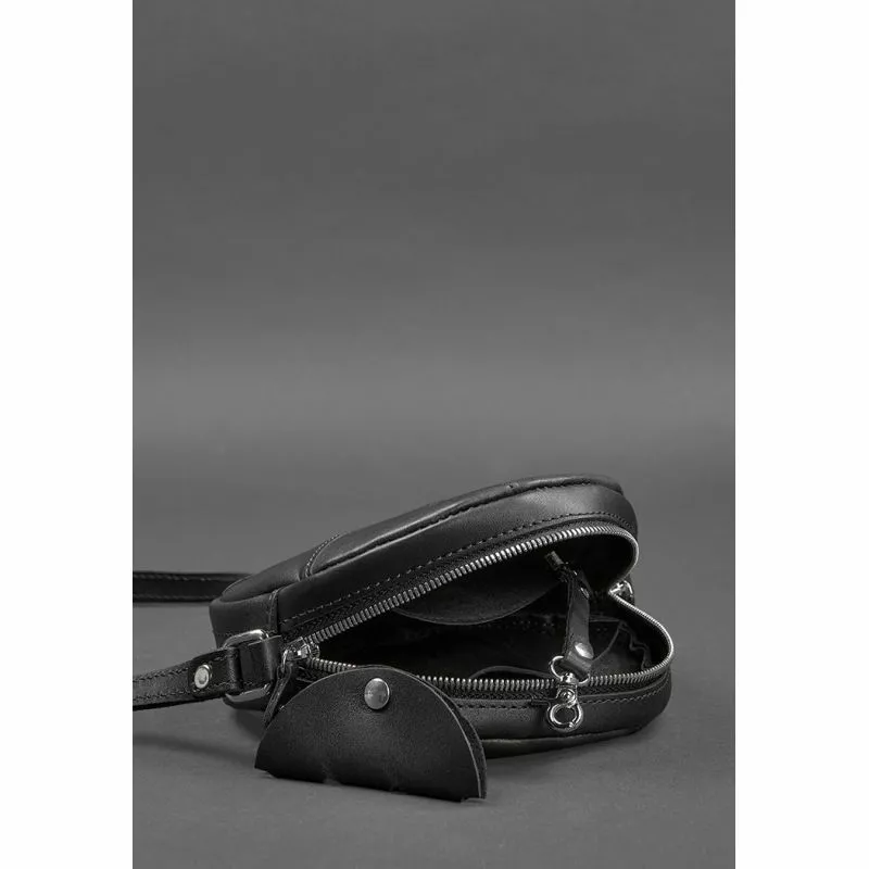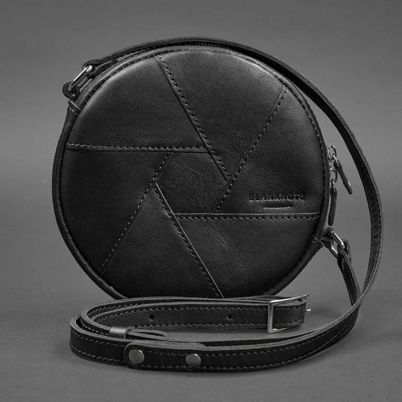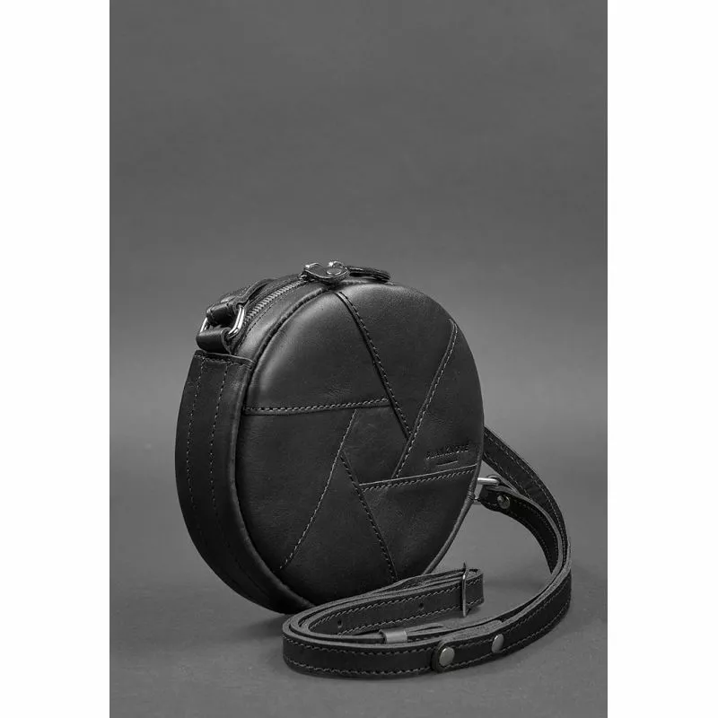 Небольшая черная сумочка круглой формы из натуральной кожи станет