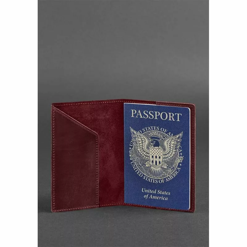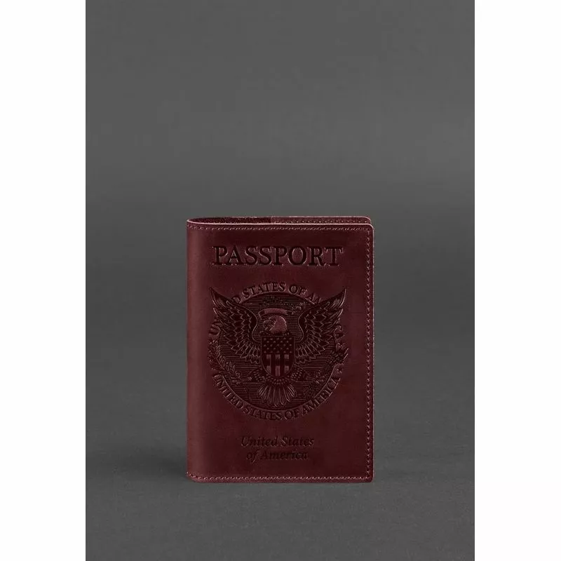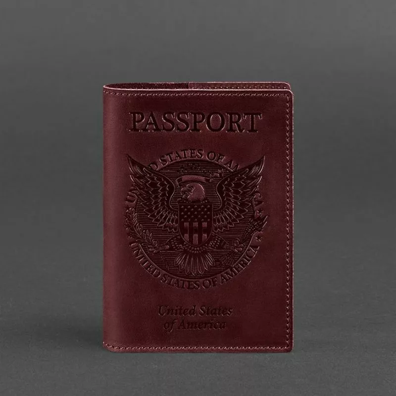 Кожаная обложка для паспорта с американским гербом бордовая