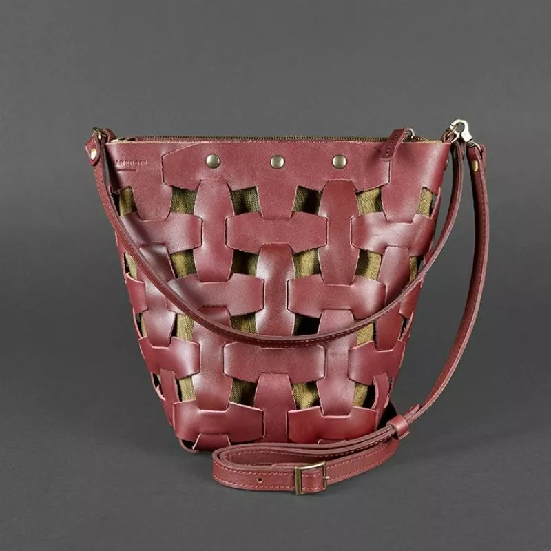 оттенке. Каркас сумки изготовлен из кожаных полосок, которые