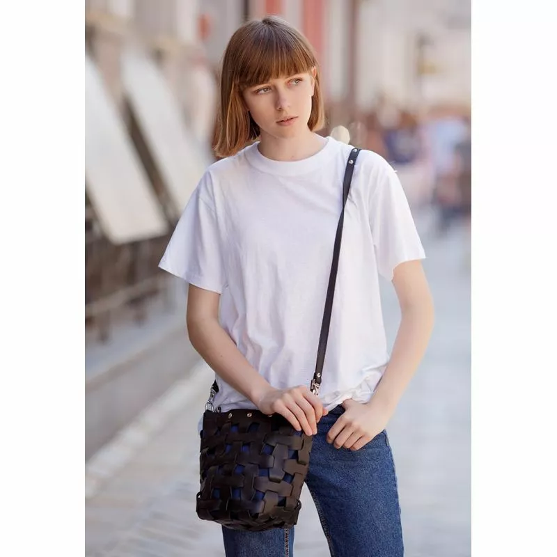 аксессуар можно носить на локотке или в руке, а длинный ремешок