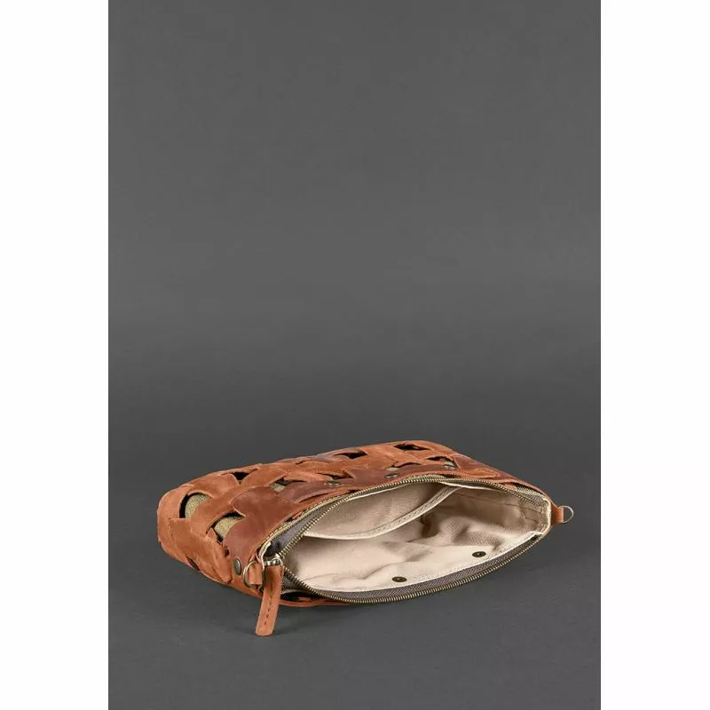 Внутри одно отделение и небольшой карман на молнии. Закрывается