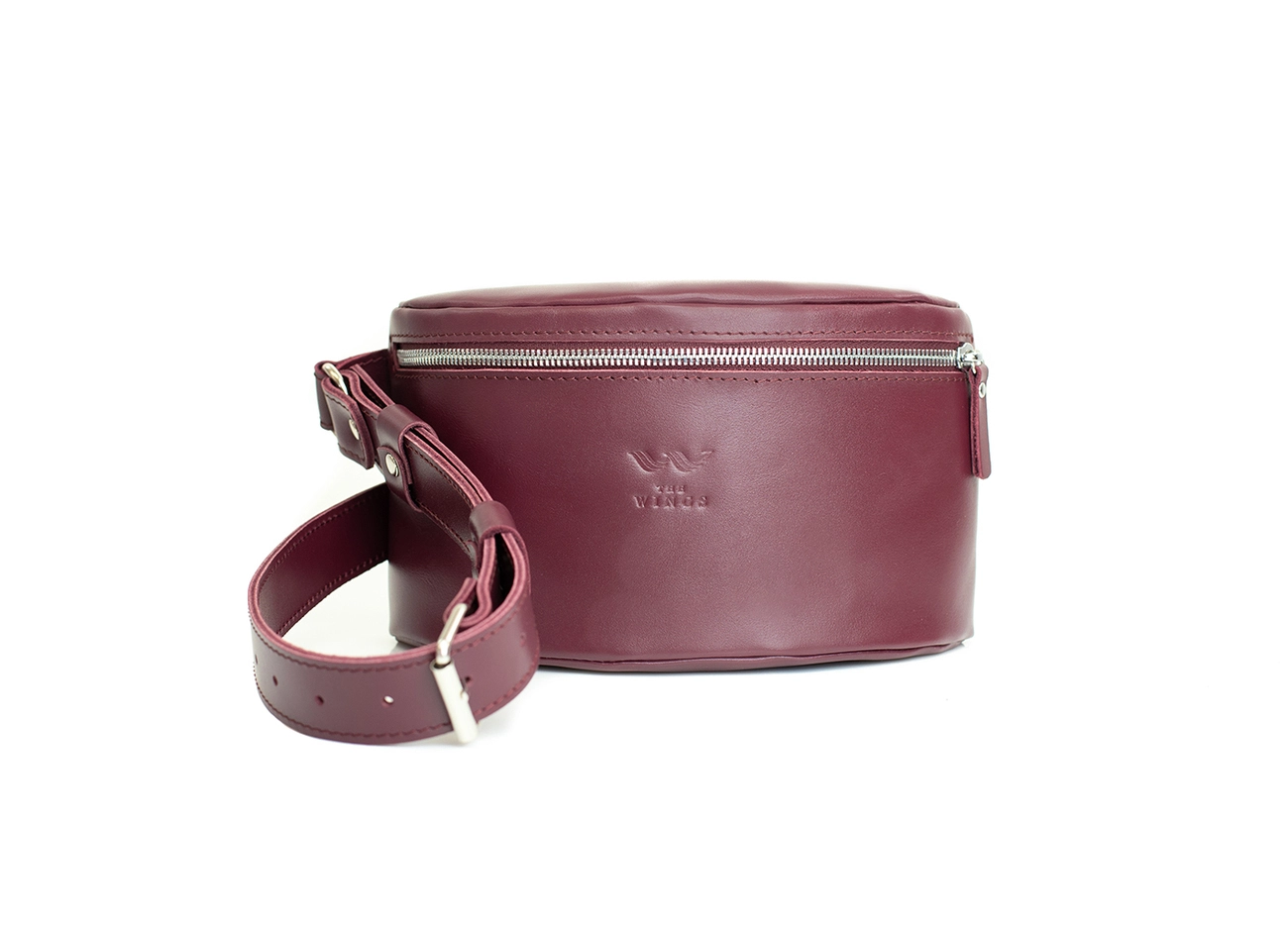 Кожаная поясная сумка бордовая
