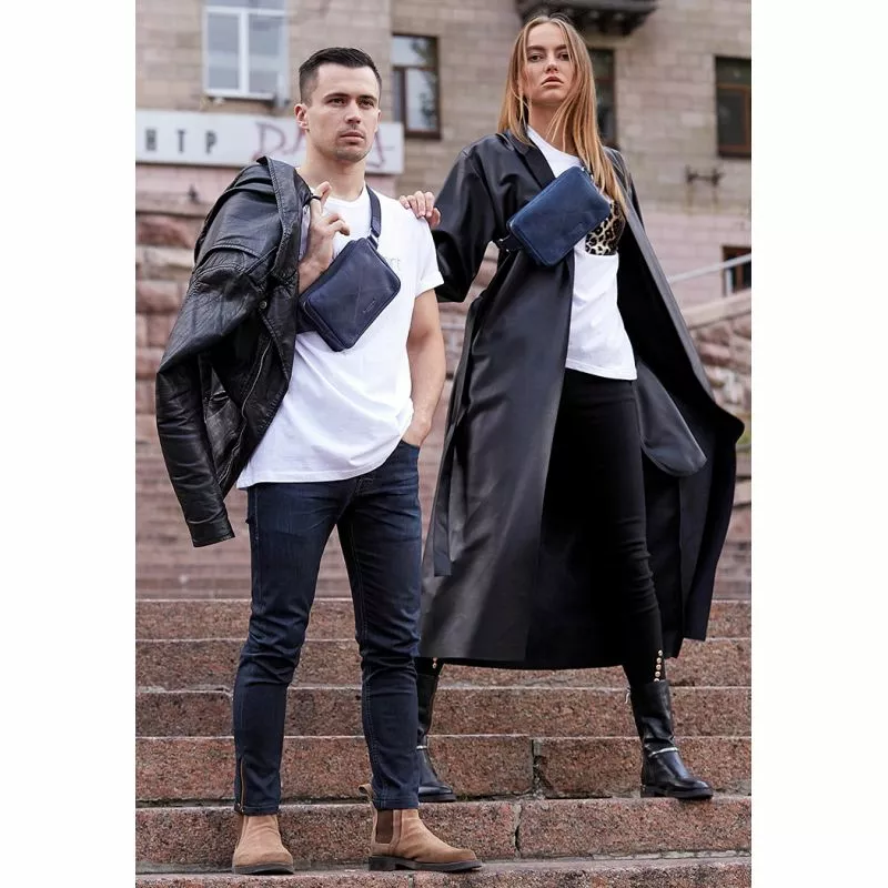 Темный и глубокий синий цвет сумки подойдет как мужчинам, так и