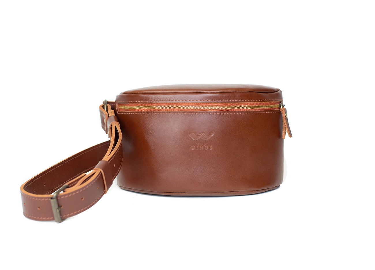 Кожаная поясная сумка светло-коричневая