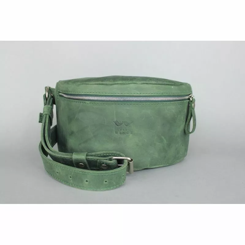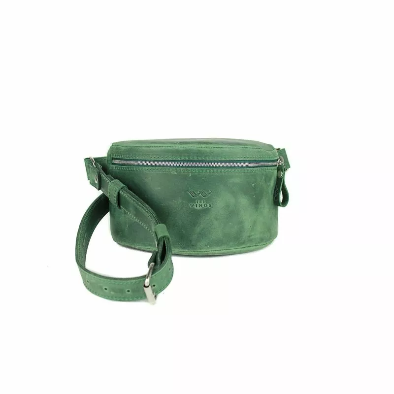 Кожаная поясная сумка зеленая