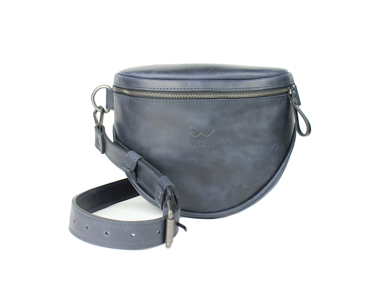 Кожаная сумка поясная-кроссбоди Vacation синяя винтажная