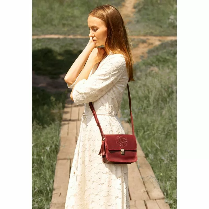 Кожаная женская бохо-сумка Лилу бордовая Crazy Horse