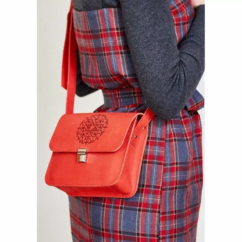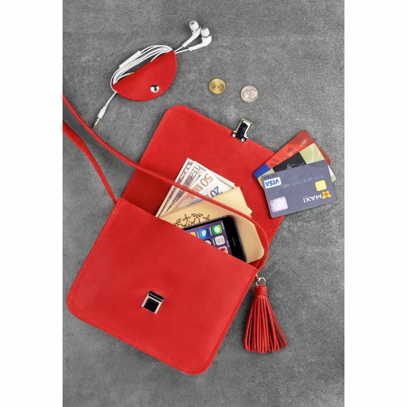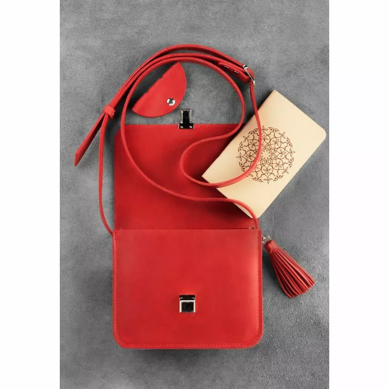 Выполнена сумка вручную из натуральной кожи в сочном красном