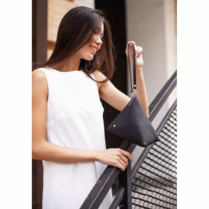 Элегантная черная сумочка в форме пирамиды станет отличным