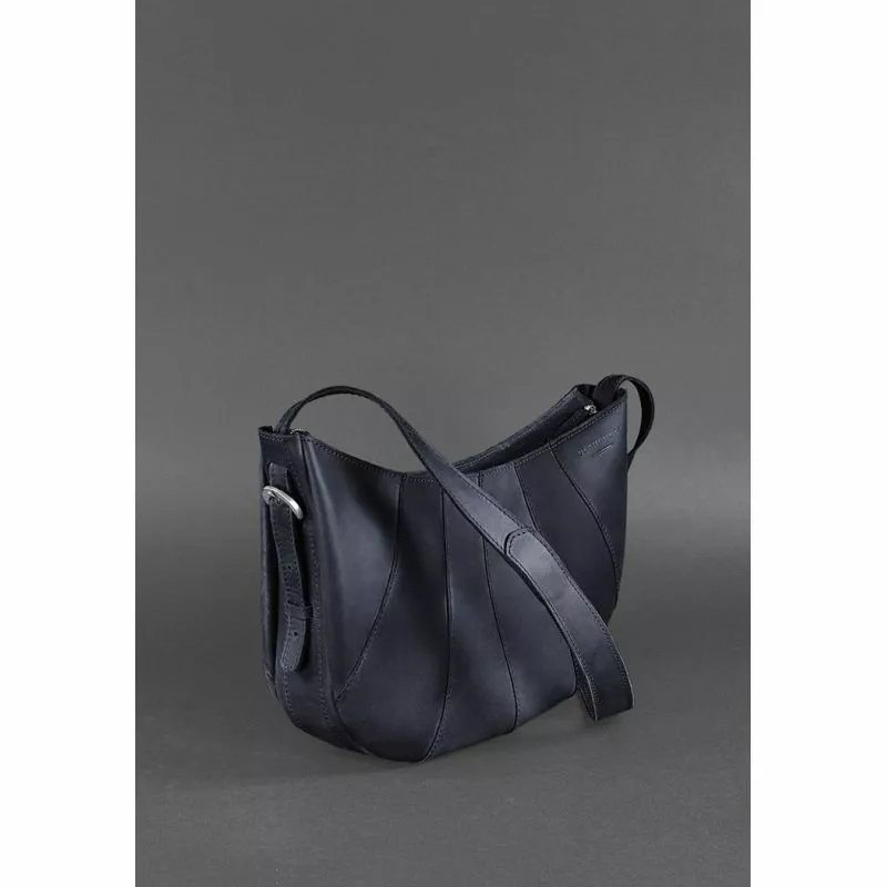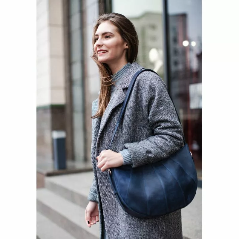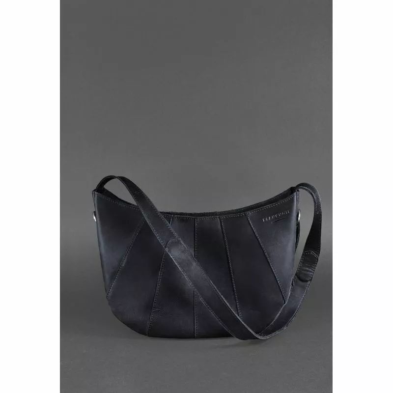 Кожаная женская сумка Круассан синяя