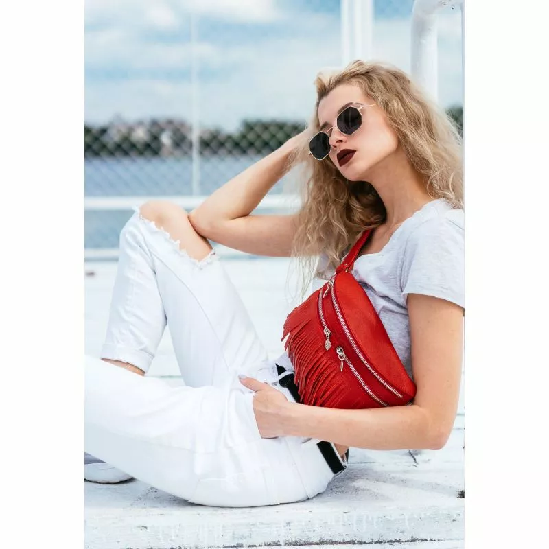 Регулируемый ремень позволяет носить сумку не только на поясе, но и