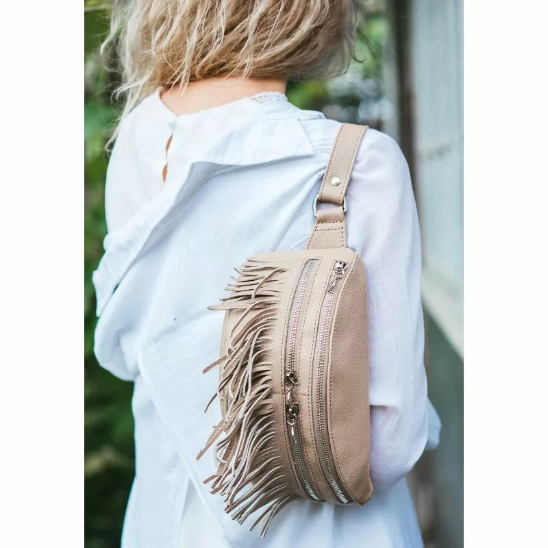 Украшена сумка бахромой, а пуллеры на молниях выполнены в виде