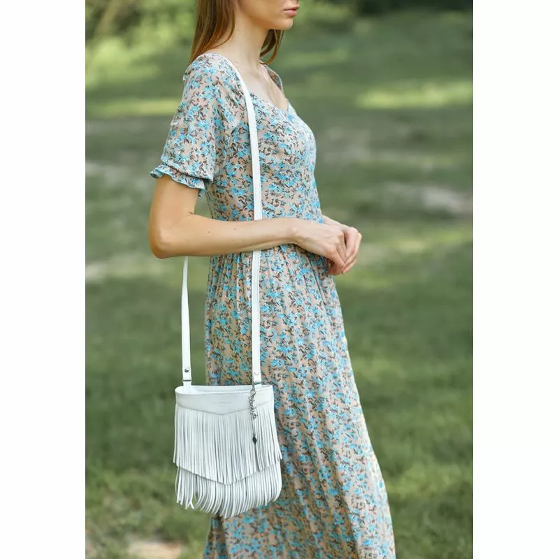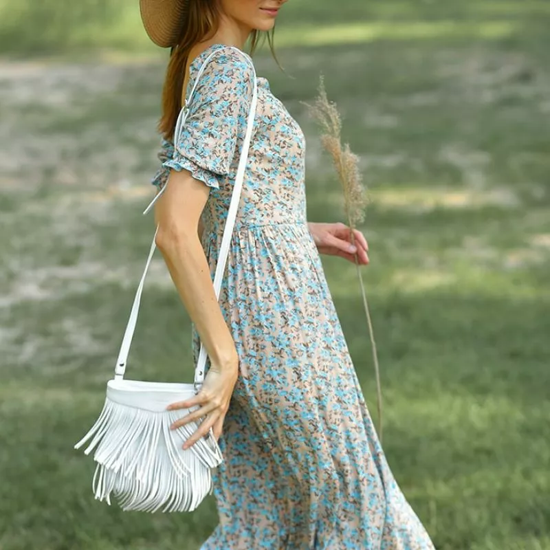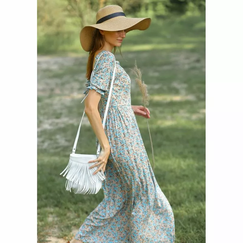 Спереди сумка декорирована бахромой и украшена милой миниатюрной