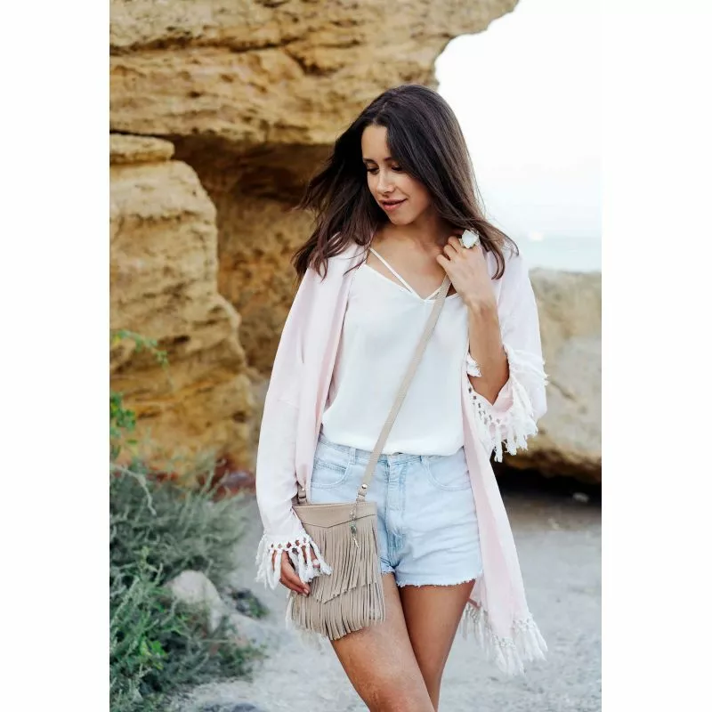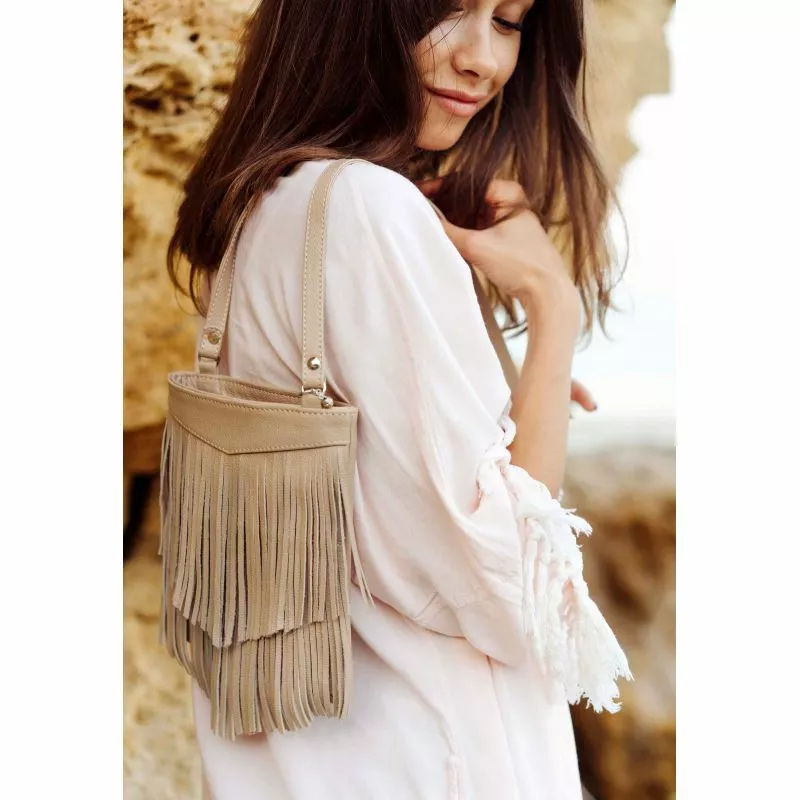 Длинная бахрома выполнена из мягкой и приятной на ощупь кожи. Ее