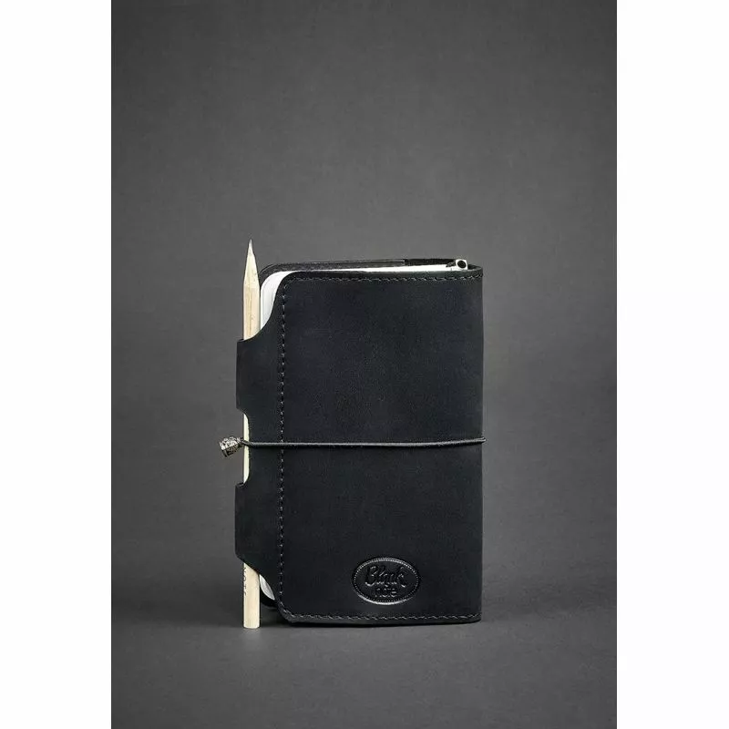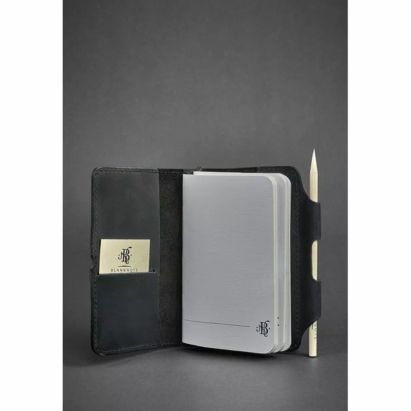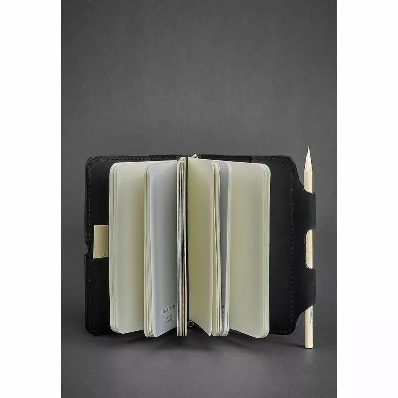 натуральная кожа черного цвета. Внутри - классический блокнот,