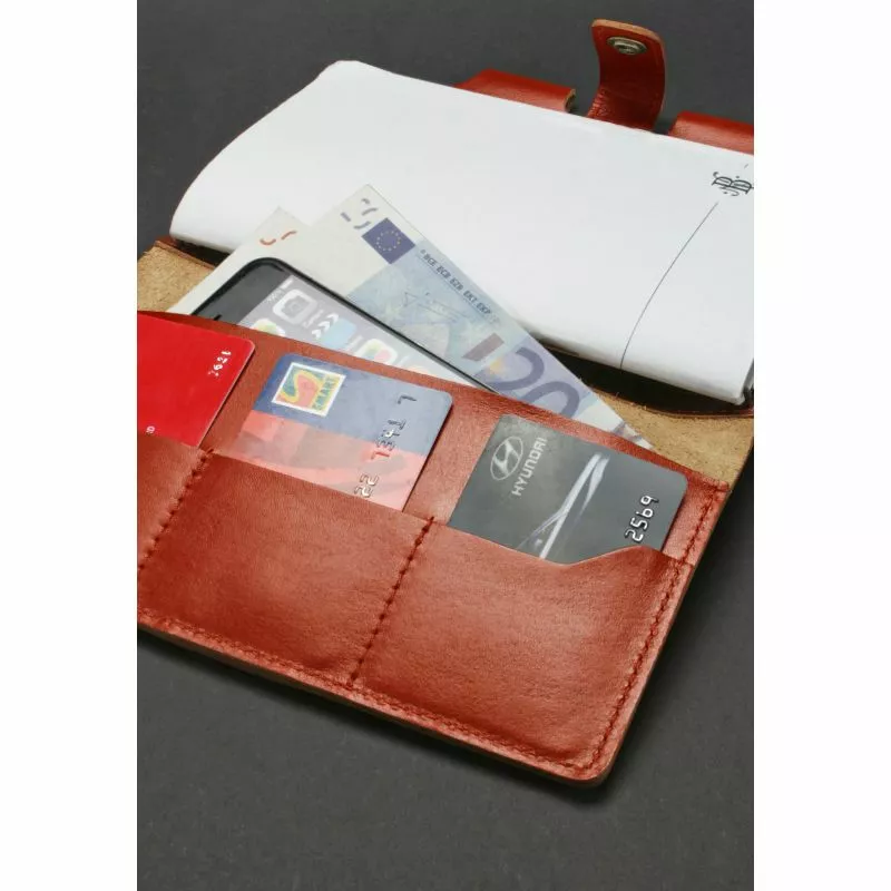 высококачественная кожа. Внутри - классический блокнот, разделенный