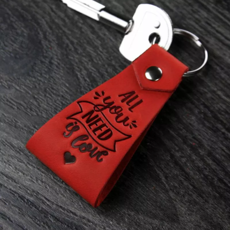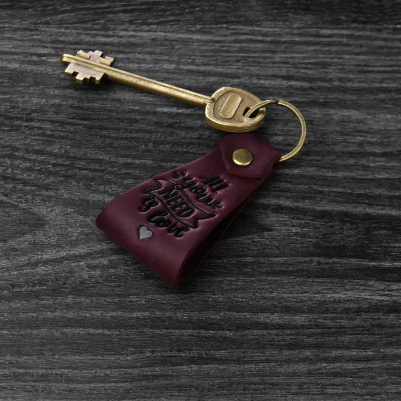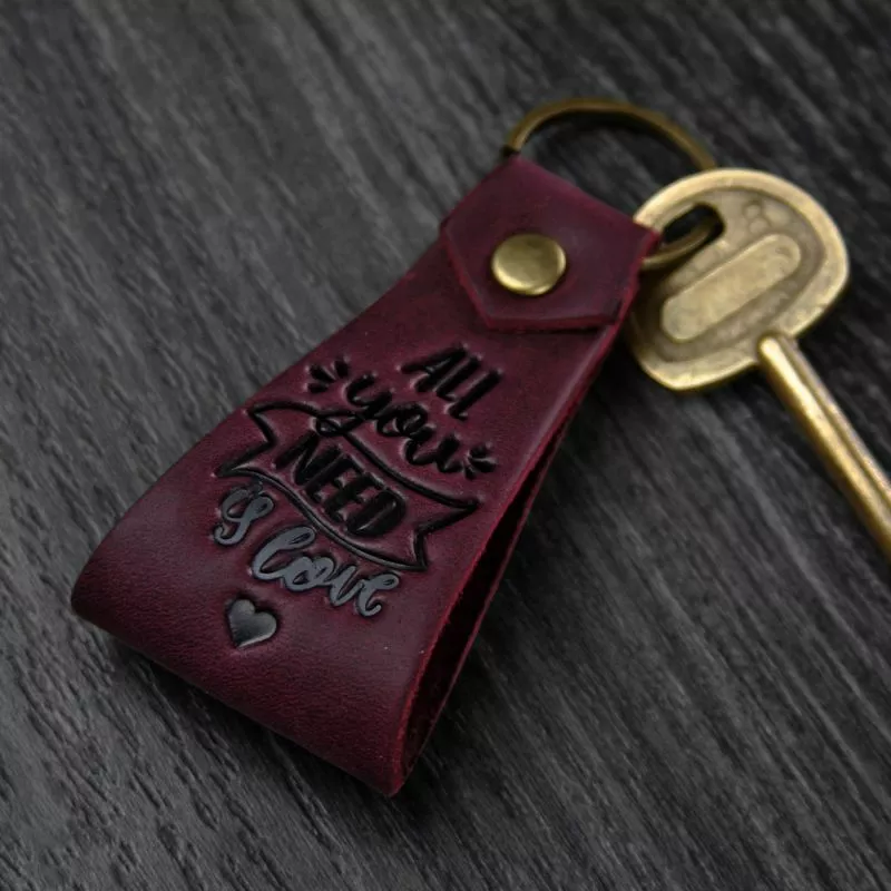 Двусторонний брелок из натуральной кожи со стильным тиснением.