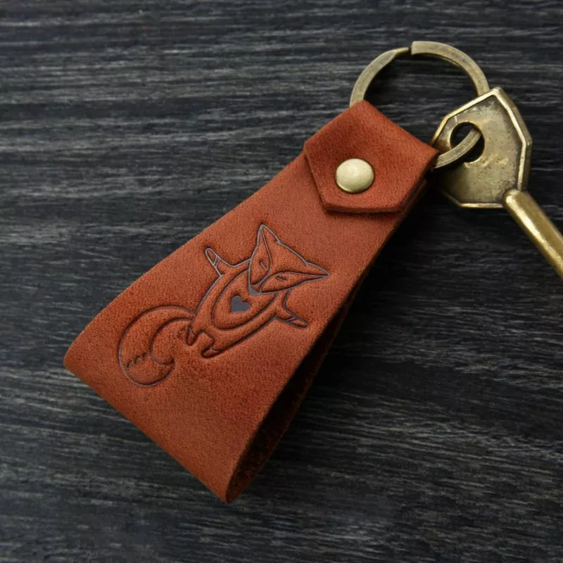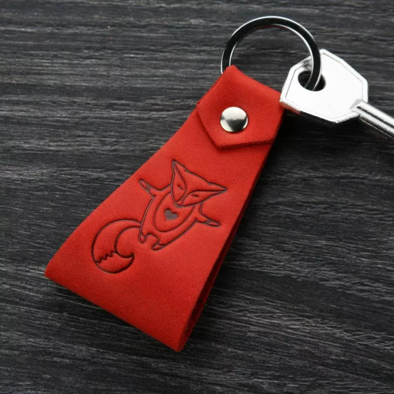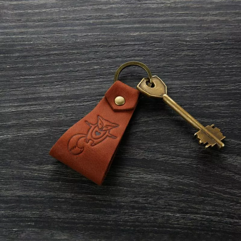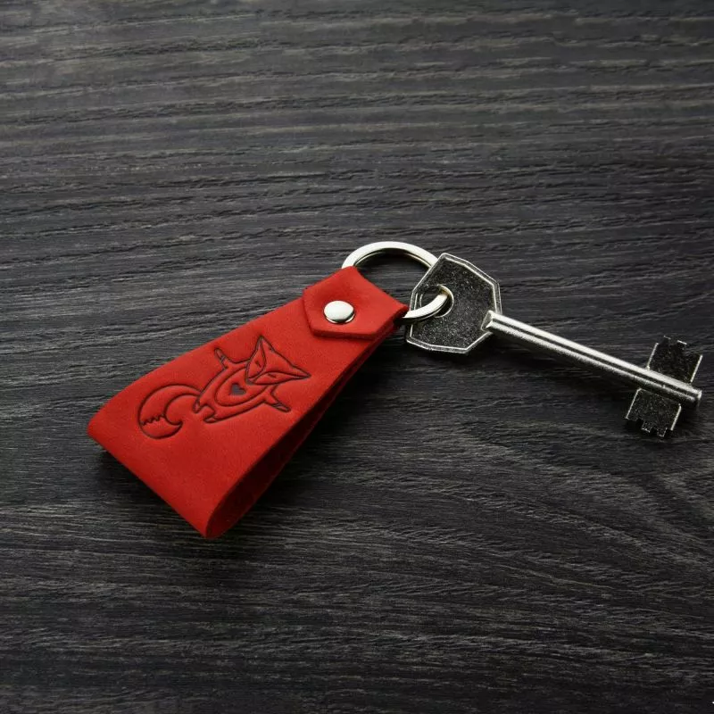 Двусторонний брелок из натуральной кожи со стильным тиснением. Ключи крепятся при помощи прочного металлического кольца. Теперь Вы их никогда не потеряете!