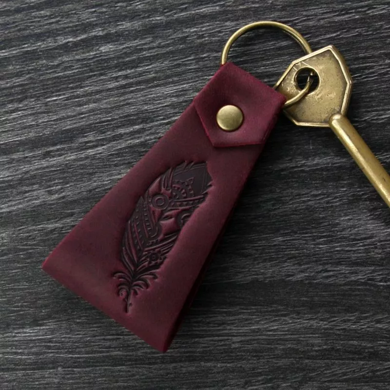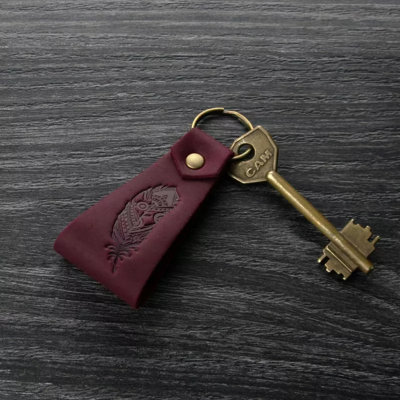 Двусторонний брелок из натуральной кожи со стильным тиснением. Ключи крепятся при помощи прочного металлического кольца. Теперь Вы их никогда не потеряете!
