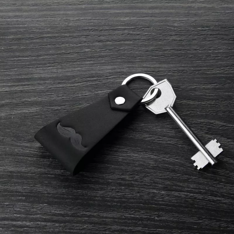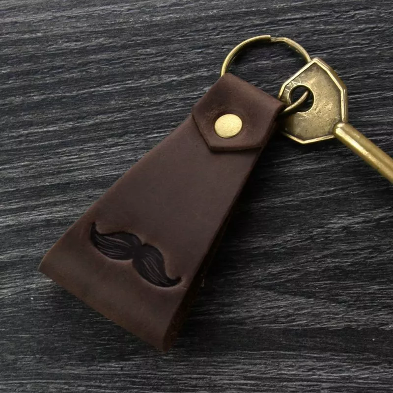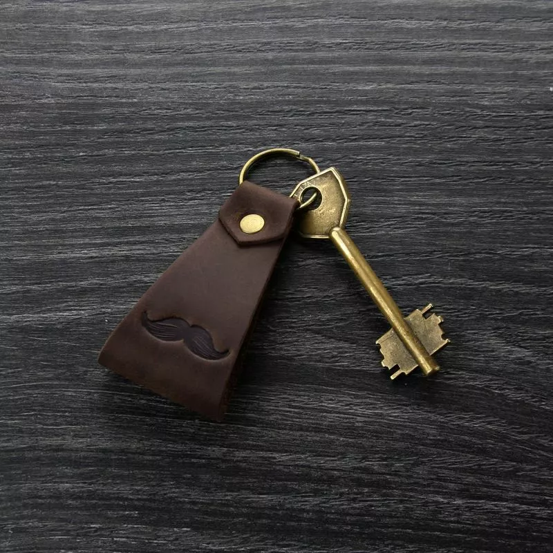Двусторонний брелок из натуральной кожи со стильным тиснением. Ключи крепятся при помощи прочного металлического кольца. Теперь Вы их никогда не потеряете!