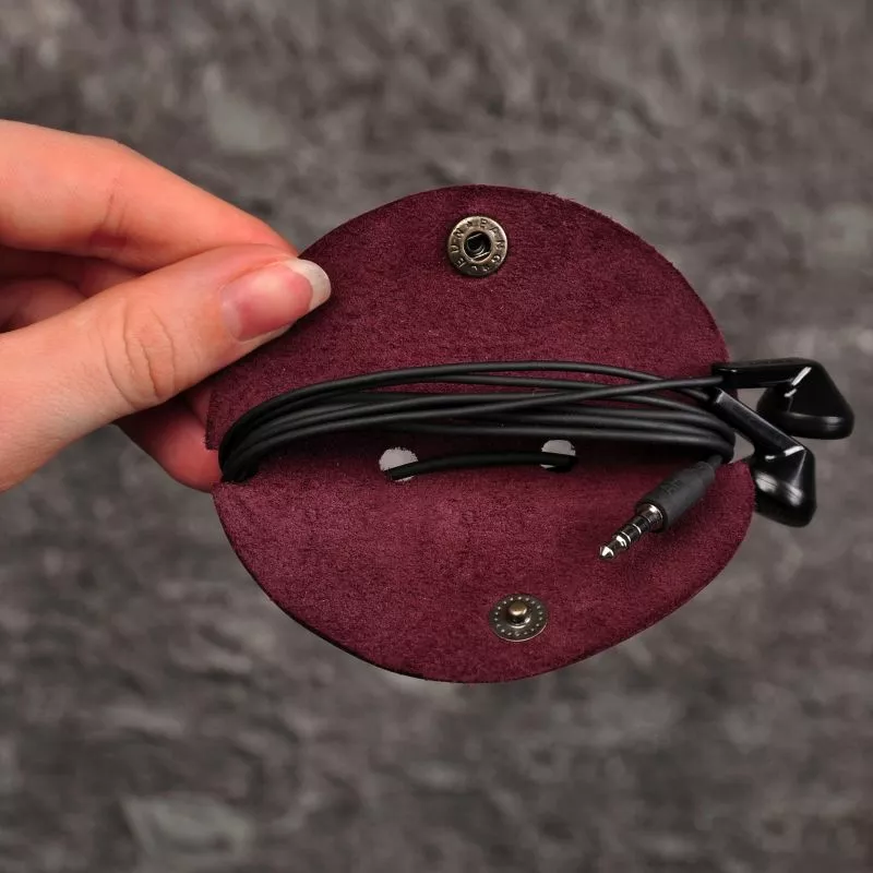 Изготовлен из натуральной кожи, надежно застегивается на кнопку, что не позволит наушникам размотаться. Наши мастера позаботились о практичности и удобстве использования. Чтобы зафиксировать наушники, проденьте провод через отверстия в центральной части холдера, после чего следует обмотать наушники вокруг. Вы можете обмотать наушники полностью или оставить необходимую длину. Холдер для наушников, поможет сэкономить вам время и нервы:)