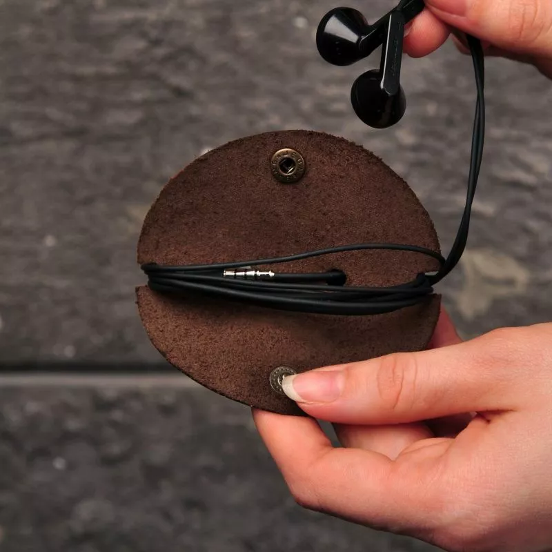 Изготовлен из натуральной кожи, надежно застегивается на кнопку, что не позволит наушникам размотаться. Наши мастера позаботились о практичности и удобстве использования. Чтобы зафиксировать наушники, проденьте провод через отверстия в центральной части холдера, после чего следует обмотать наушники вокруг. Вы можете обмотать наушники полностью или оставить необходимую длину. Холдер для наушников, поможет сэкономить вам время и нервы:)