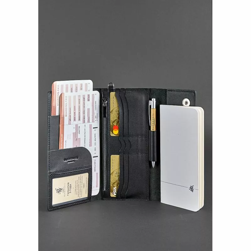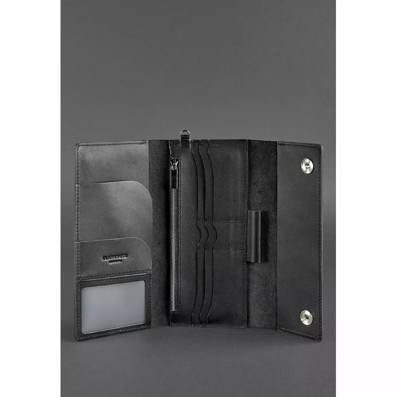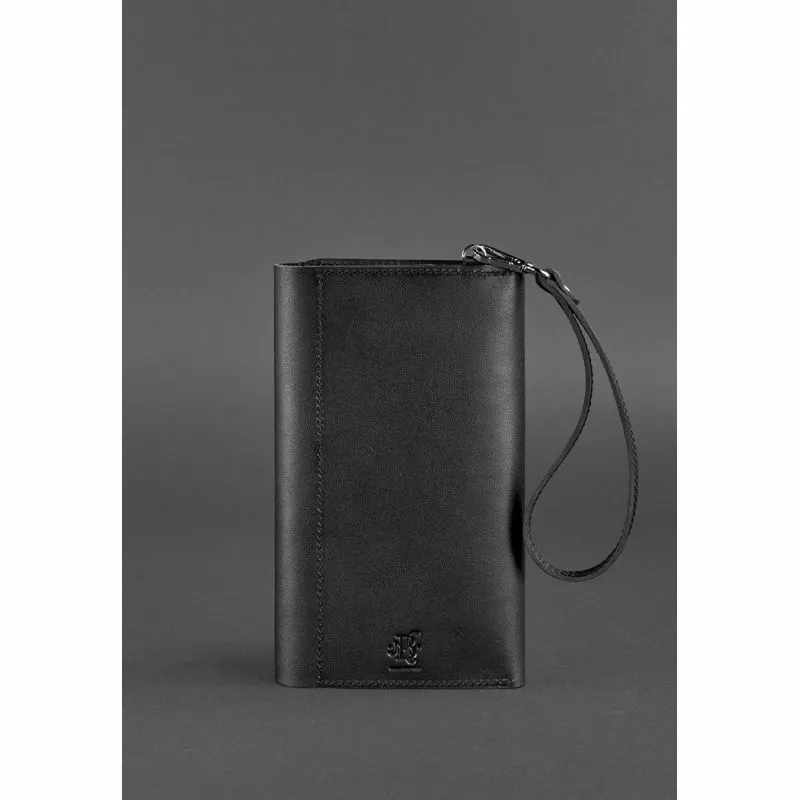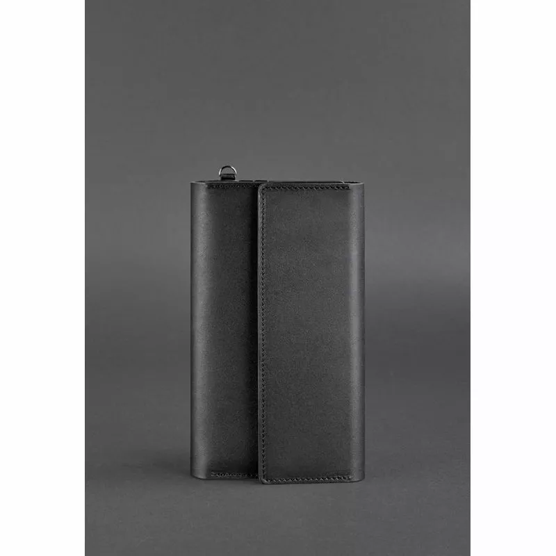 Удобный многофункциональный черный клатч-органайзер из натуральной