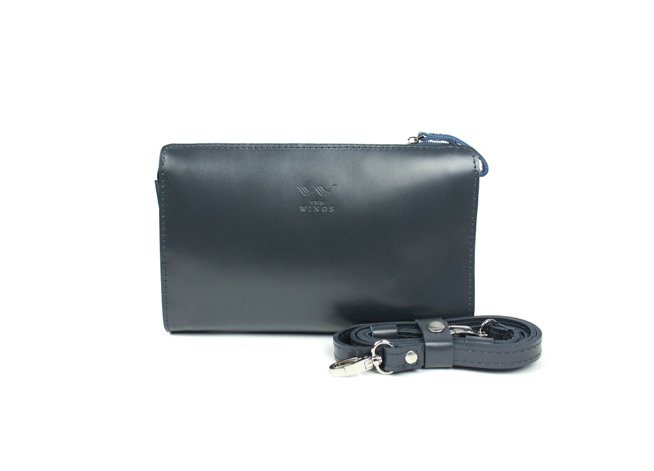 Размер: 17,5/25,5/5 см Материал: кожа Застегивается на змейку Внутри: - большое отделение, разделенное перегородкой - карман на молнии - 4 отделение для карточек В комплекте: съемная регулируемая шлейка для носки через плечо Фурнитура: металлическая, цвет антик или никель