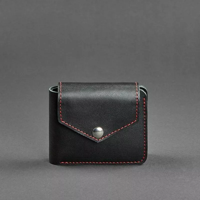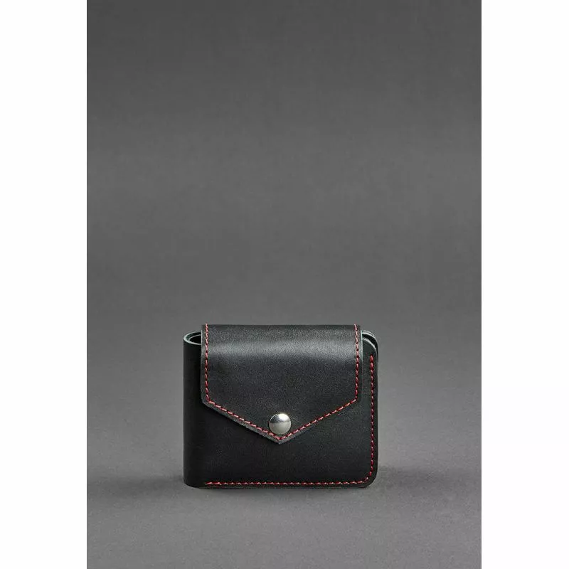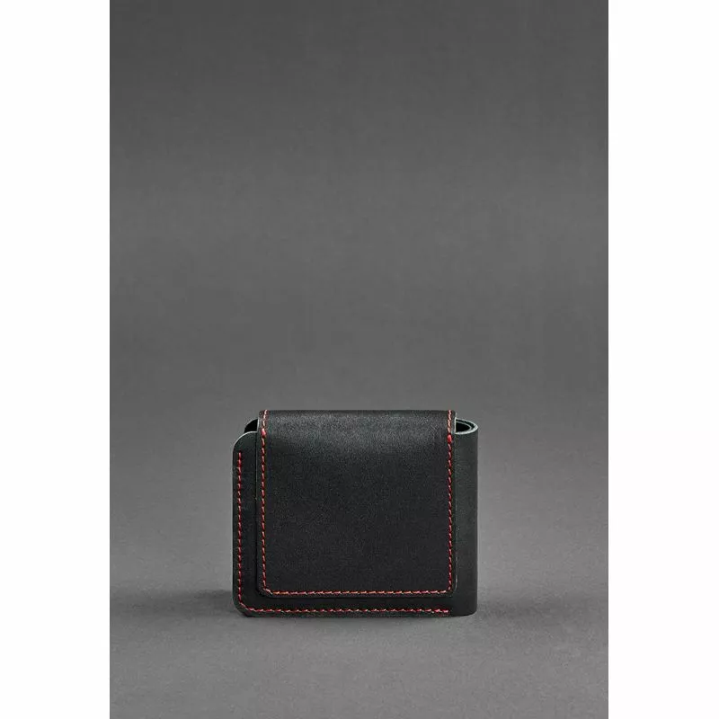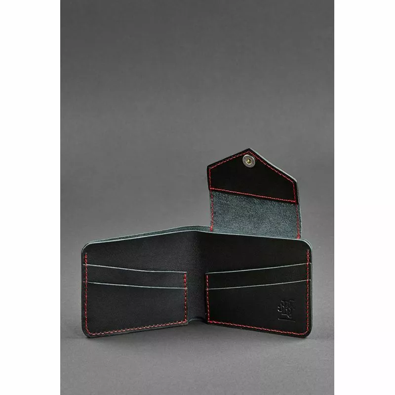 Кожаное портмоне 4.2 на кнопке черное с красной нитью