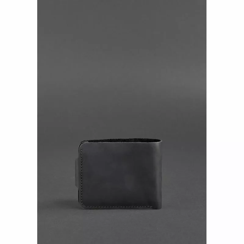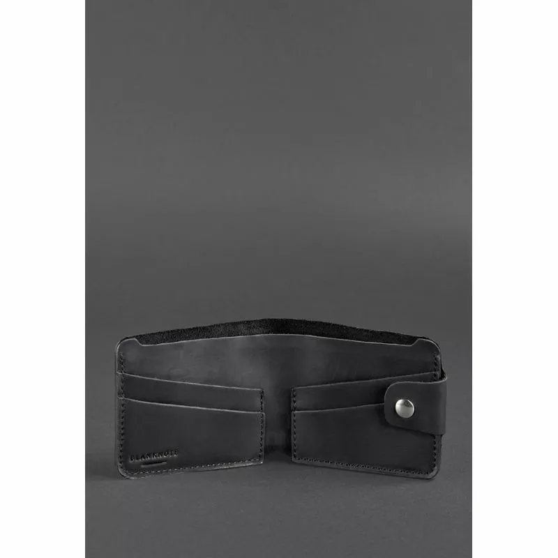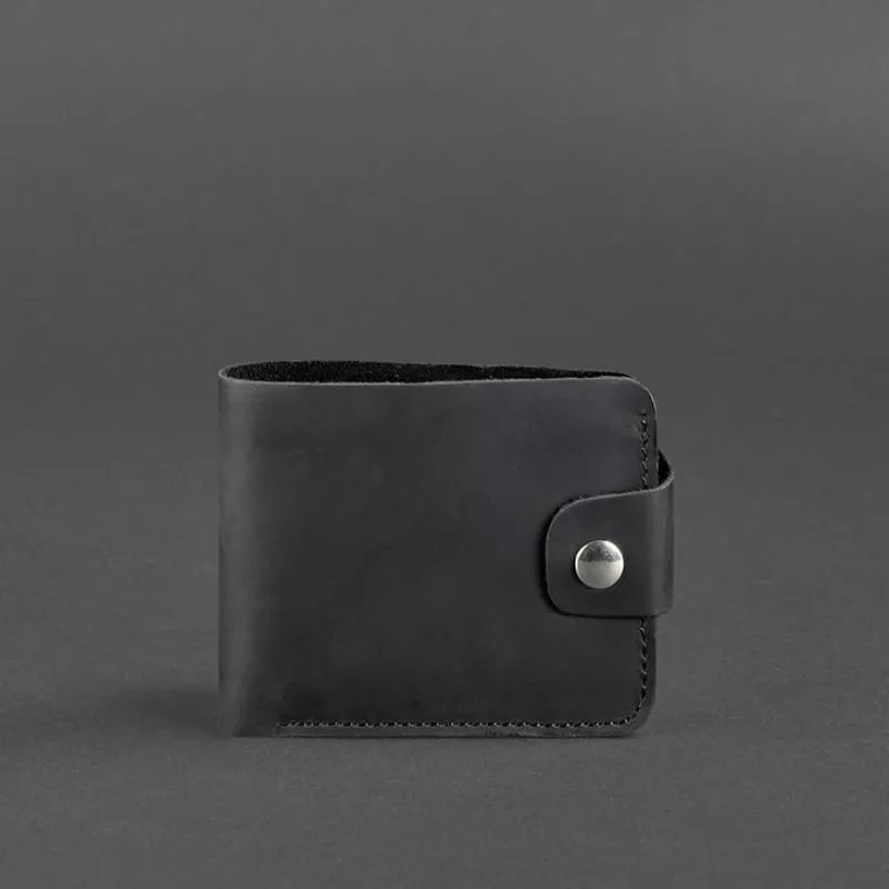 Компактное черное портмоне из натуральной кожи Crazy Horse.