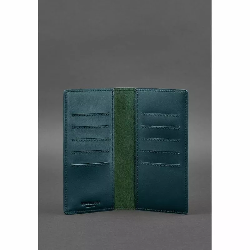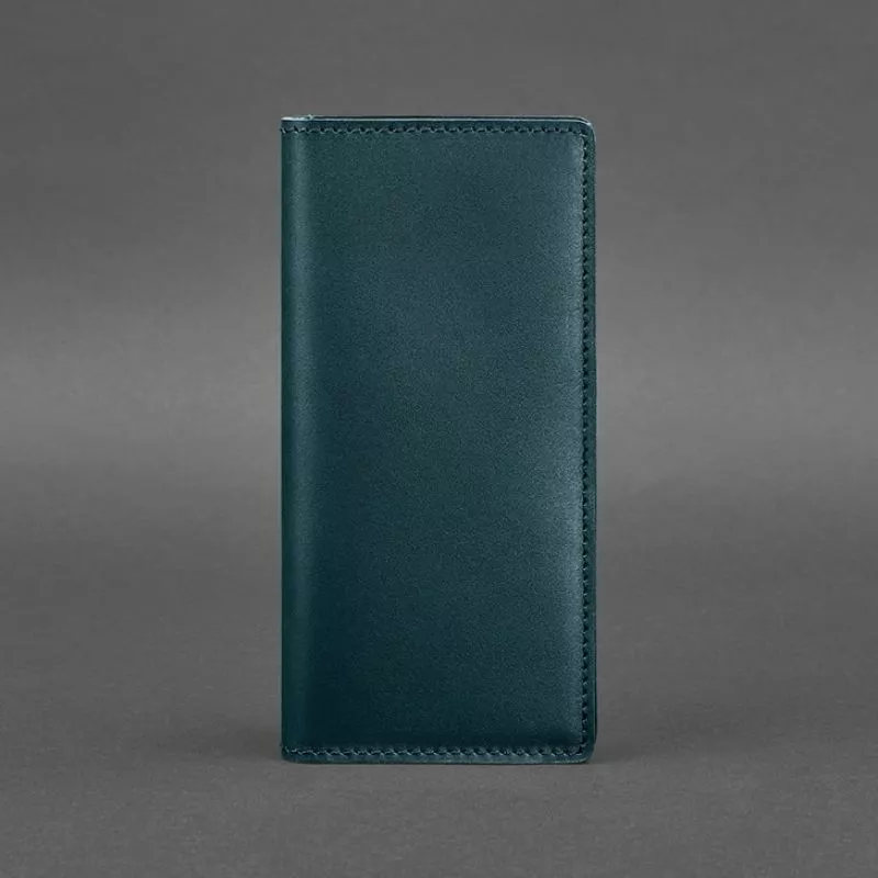 Стильное вертикальное портмоне из натуральной кожи в зеленом цвете.