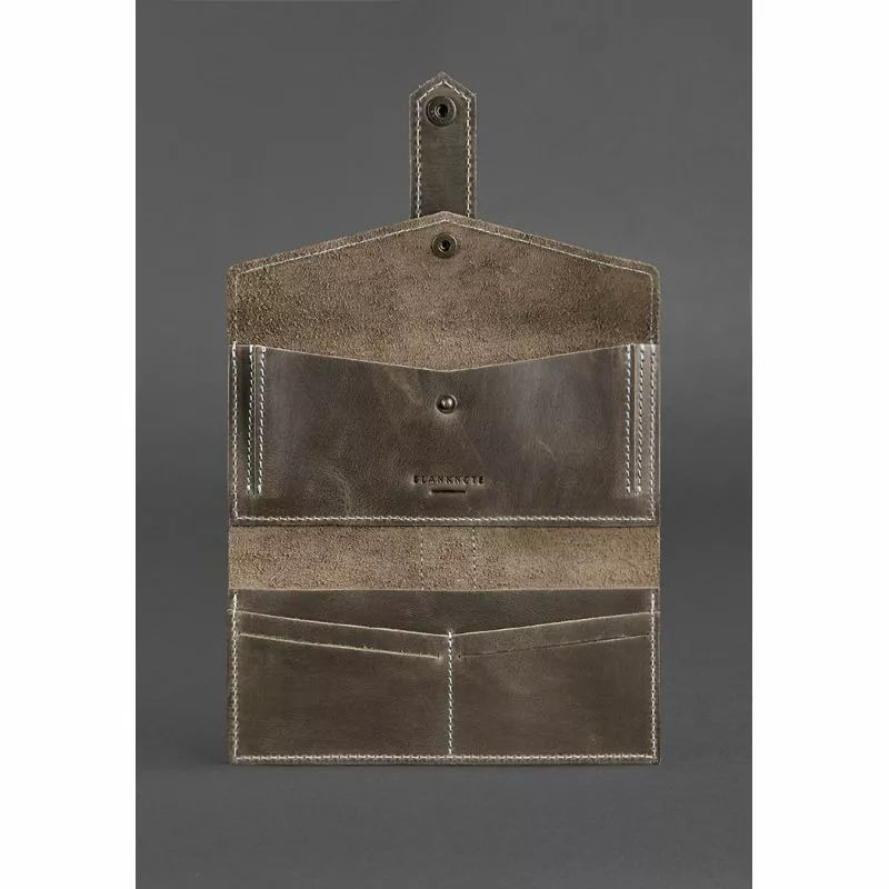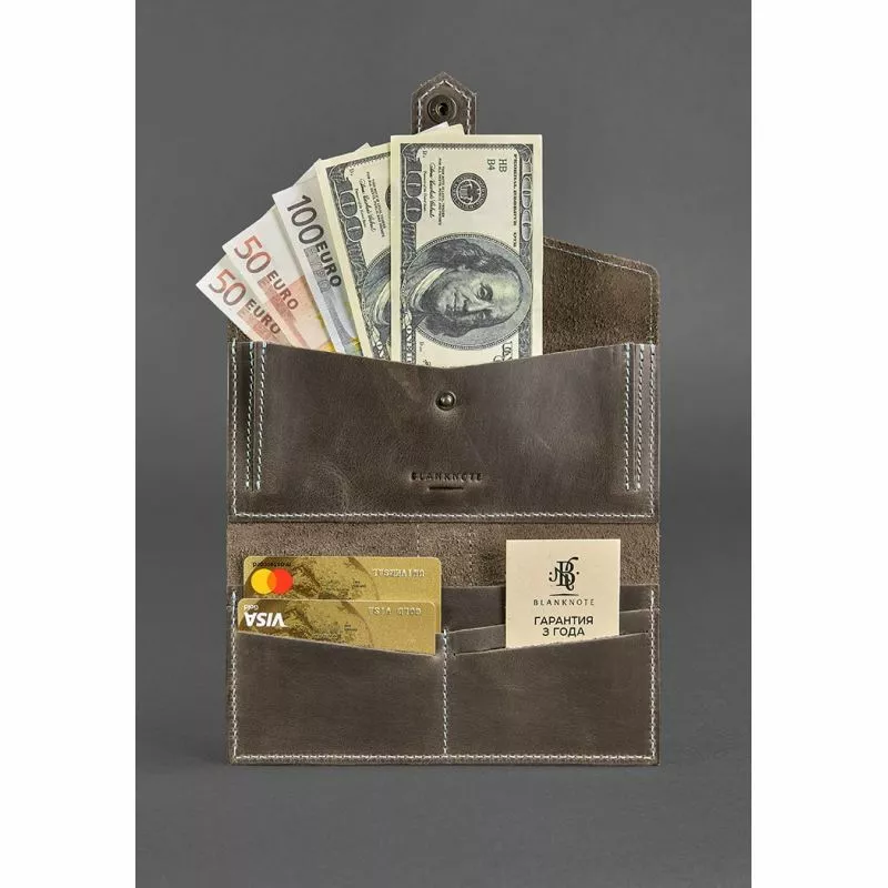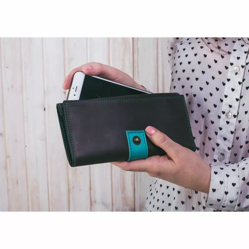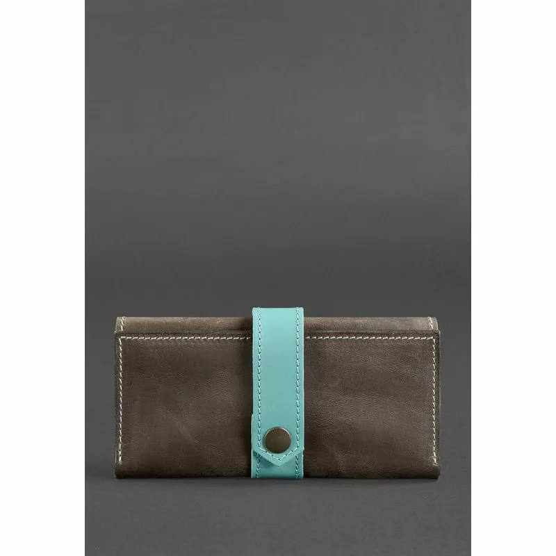 Кожаное женское портмоне 3.0 темно-коричневое с бирюзовым