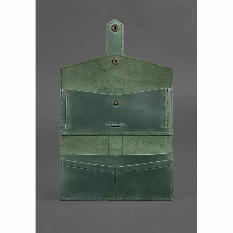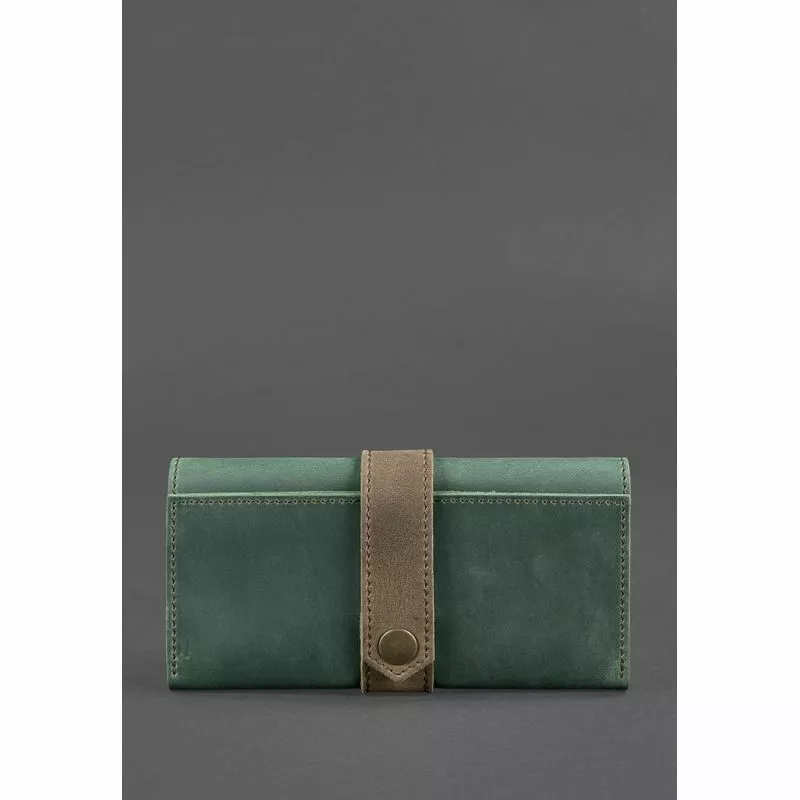 Кожаное женское портмоне 3.0 зеленое с коричневым