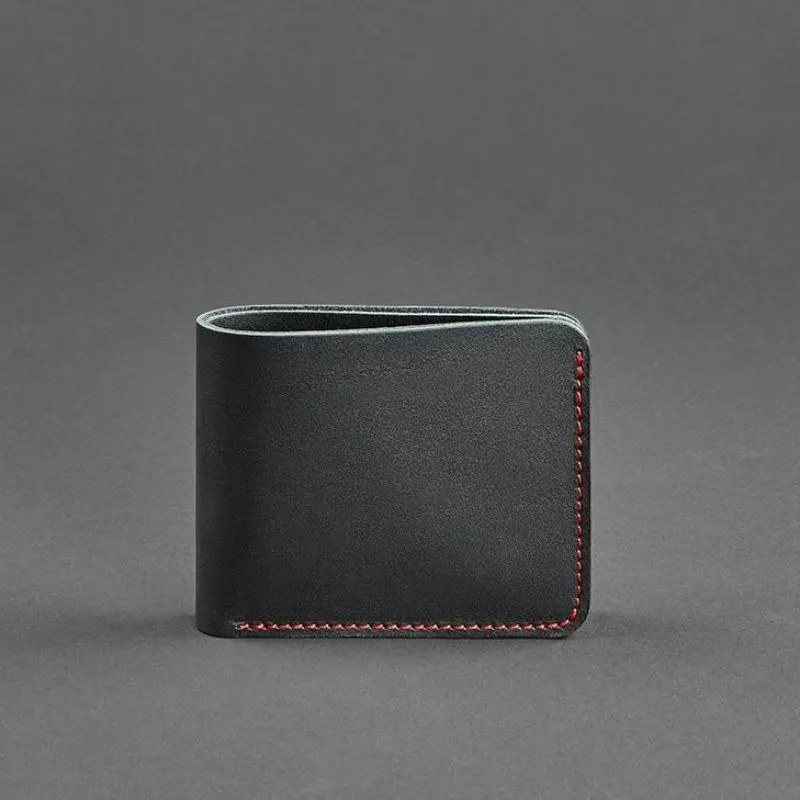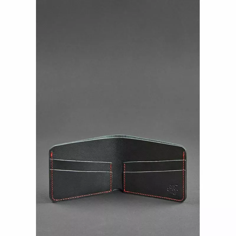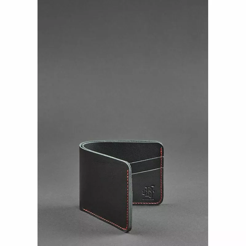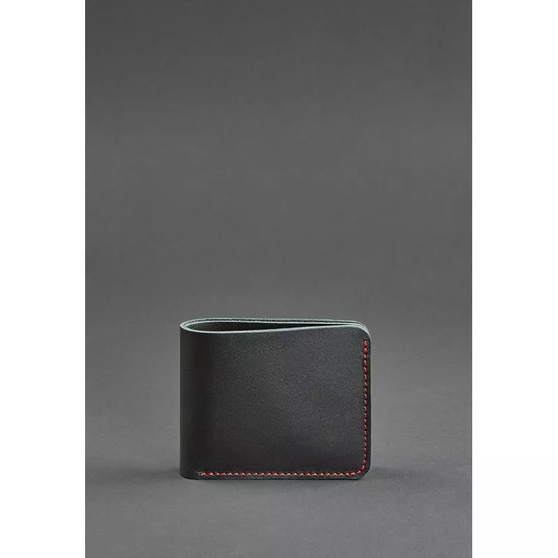 Мужское кожаное портмоне 4.1 (4 кармана) черное с красной нитью