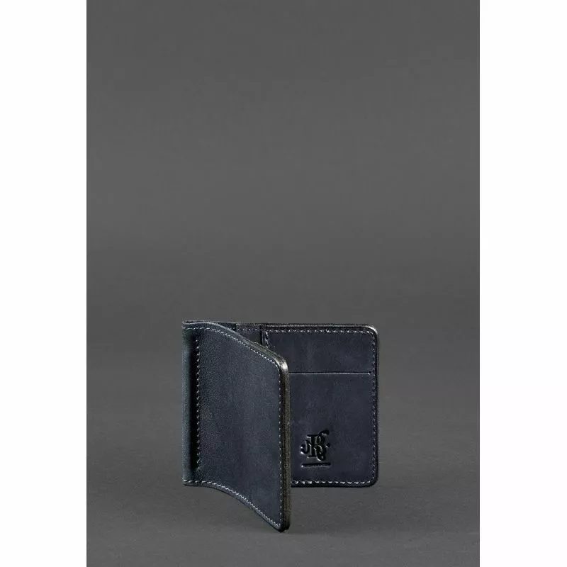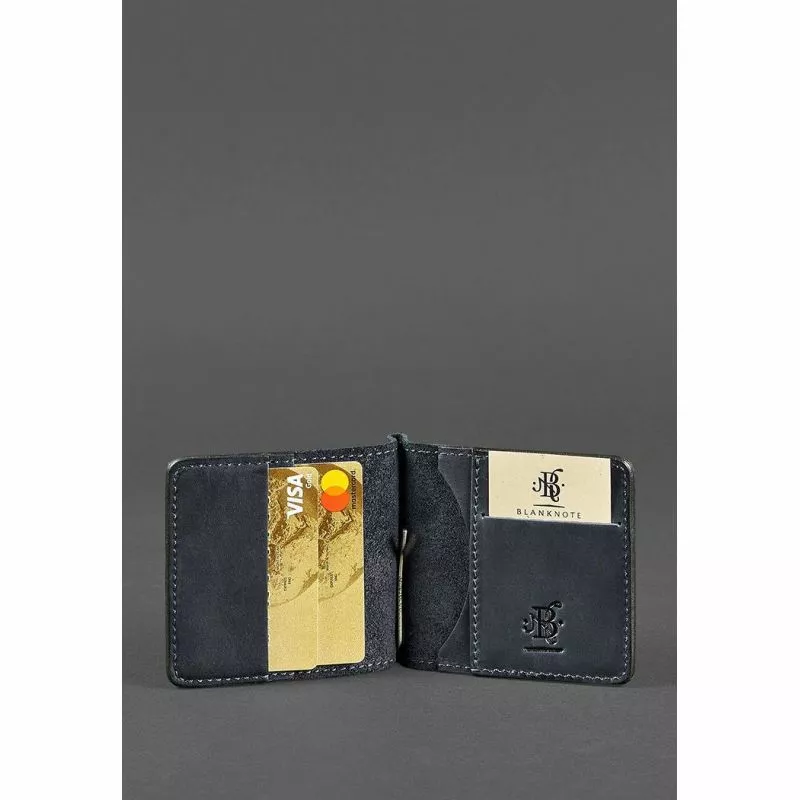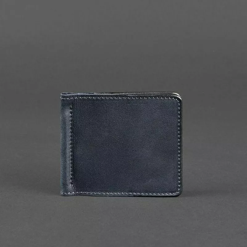 Мужское кожаное портмоне синее 1.0 зажим для денег