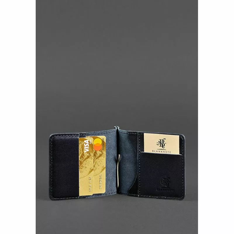Мужское кожаное портмоне синее Краст 1.0 зажим для денег