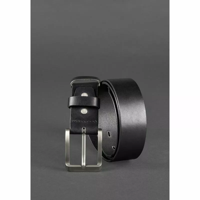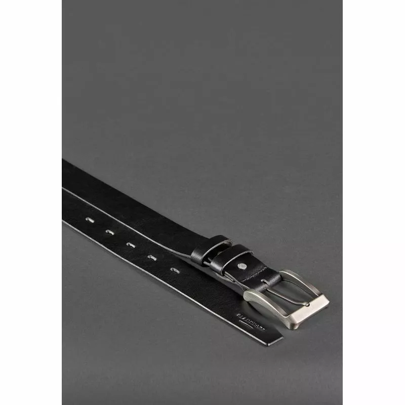 Кожаный ремень черного цвета с металлической пряжкой подчеркнет