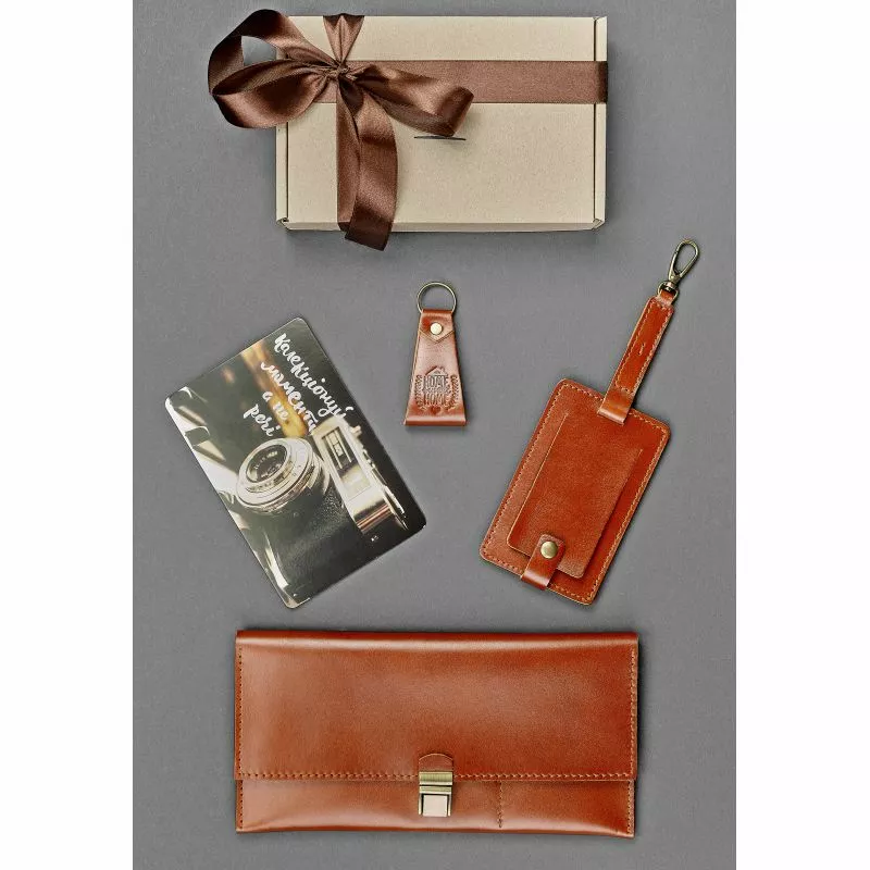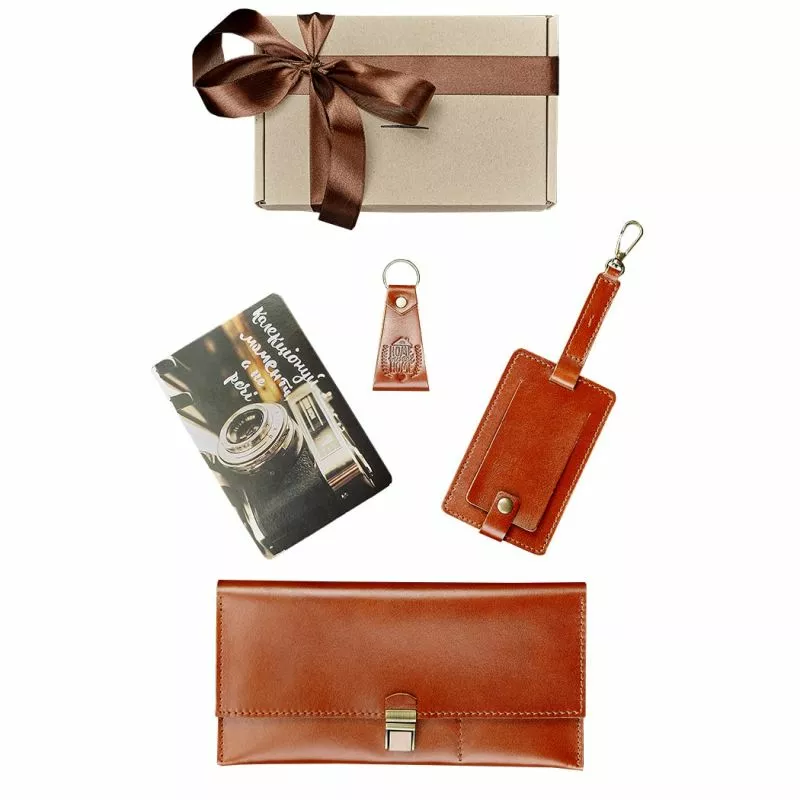 тревел-кейс (12х24 см), бирка для багажа 22,5х7,5 см), брелок (4х4 см), открытка (10х15 см)