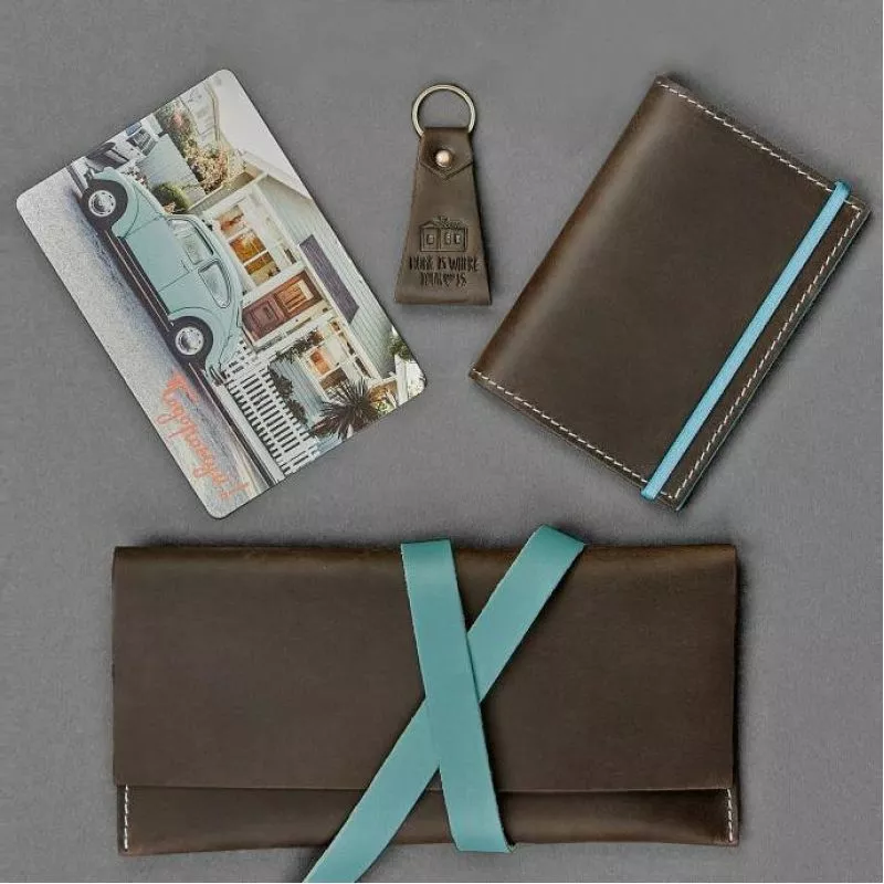 тревел-кейс (12х24 см), обложка для паспорта (10х14 см), брелок (4х4 см), открытка (10х15 см)