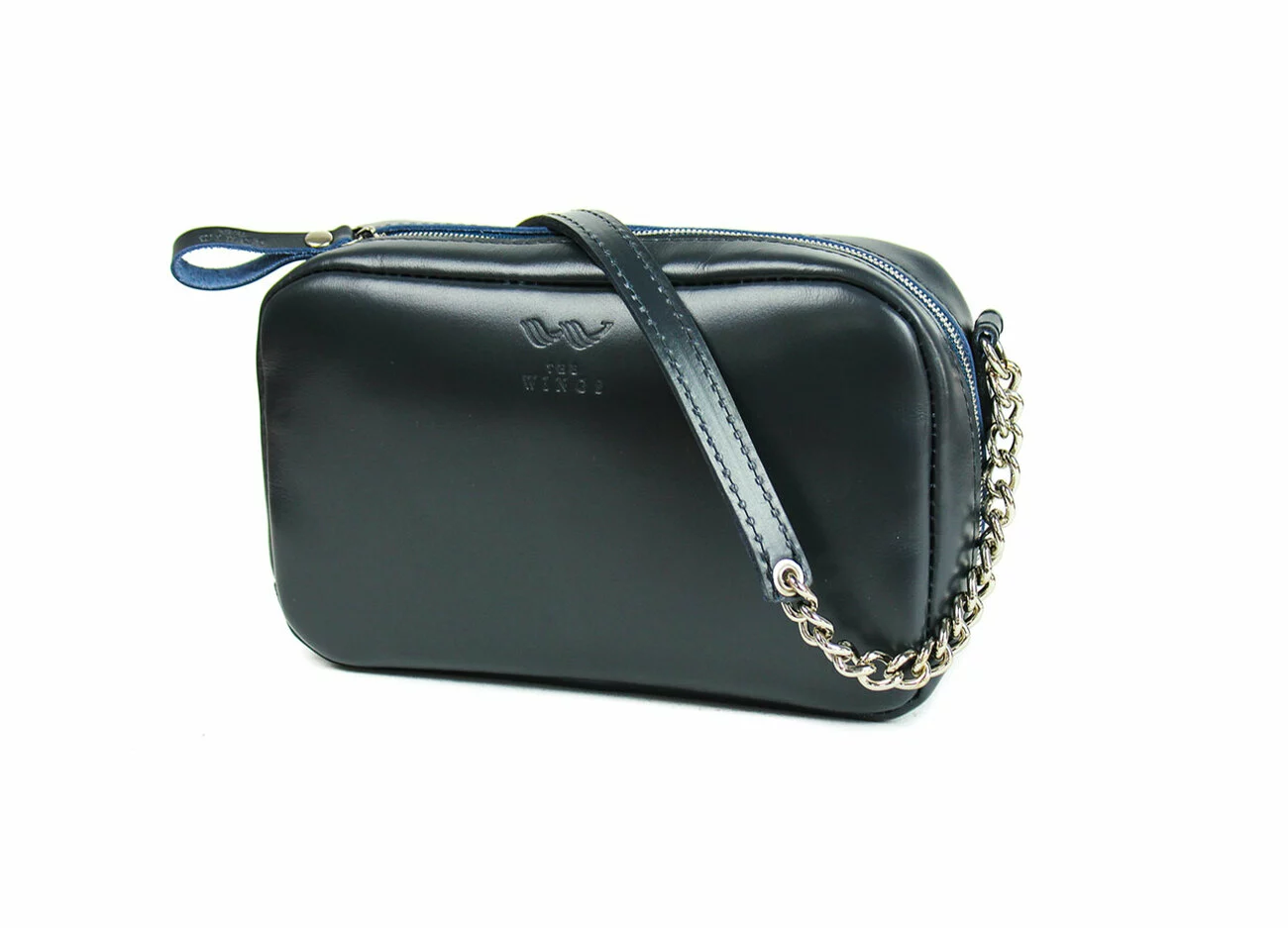 Розмір: 13х22х6 Матеріал: шкіра, підкладка з тканини Застібається на блискавку Всередині: - 1 кишеня на блискавці - 1 звичайна кишеня - 1 великий відділ Фурнітура: металева, колір нікель Шлейка не знімається – ланцюжок із шкіряною вставкою (можна зробити повністю шкіряну)