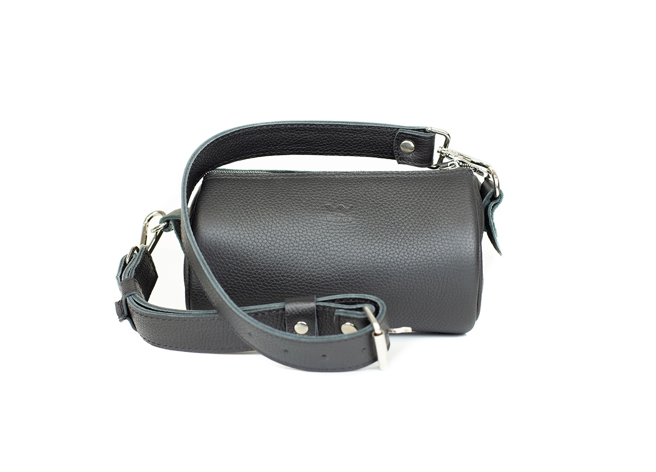 Шкіряна сумка поясна-кросбоді Cylinder чорна флотар