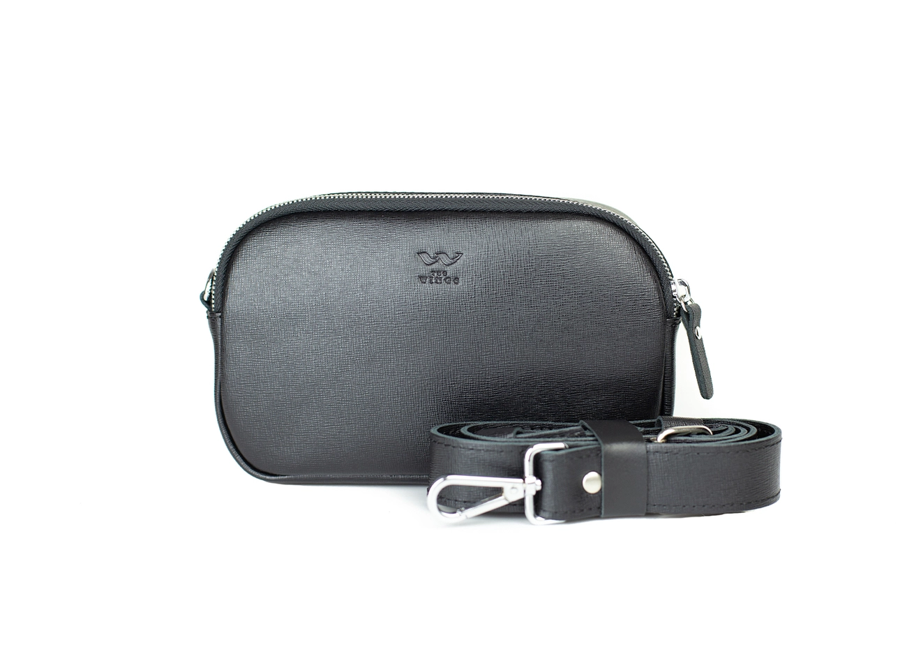 Розмір: 13х20,5х4,5 Метеріал: шкіра, тканинний підклад Застібається на блискавку Всередині: - 1 кишеня на блискавці - 1 звичайна кишеня Сумку можна носити як поясну, так і кроссбоді Фурнітура: металева, колір нікель Шлейка знімається - переставляється